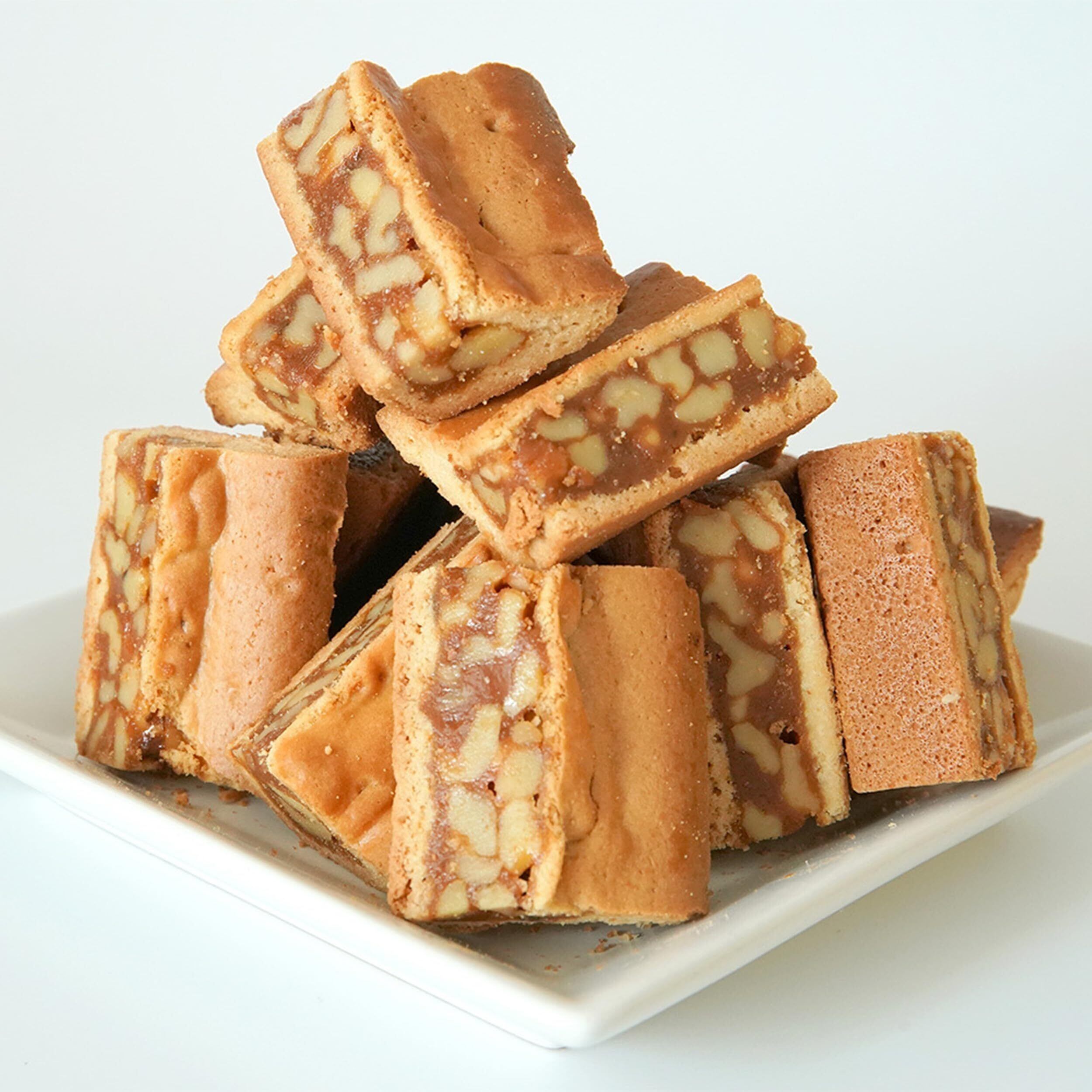 鎌倉紅谷「クルミッ子」製造時に出来る切れ端を袋詰めにしました。正規品のクルミッ子に比べて生地部分が多く、少し違った味わいと食感が楽しめます。自家製キャラメルとクルミがぎっしりの鎌倉銘菓。 クルミッ子の焼成後、一晩寝かせ、カットする際にできる端の部分を袋詰めにしました。通常のクルミッ子に比べて生地部分が多く、一味違った味わいをお楽しみいただけます。