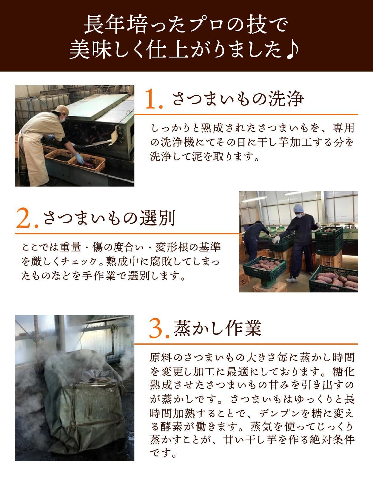 「この干し芋は、甘さ控えめでも口の中で広がる自然な甘みが魅力で、ヘルシーなおやつとしてぜひ楽しんでいただきたい一品です。お仕事の合間や子供のおやつ、一息つく時間にぴったりの軽食です!また、心地よい食感がリフレッシュしてくれることでしょう。」