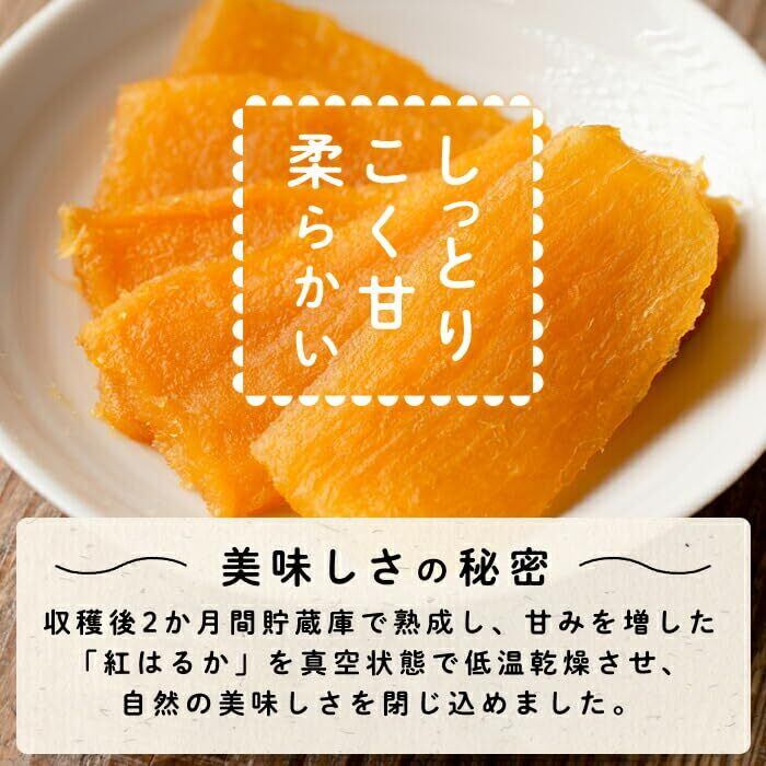 「この干し芋は、素材の力を活かし、外はやわらかく、内はしっかりとした食感を実現しました。おやつや小腹が空いたときにぴったりで、日常の中で気軽に楽しめる素朴さが魅力です。紅はるかの優しい甘さが、ティータイムや家族とのシェアにもおすすめです!」