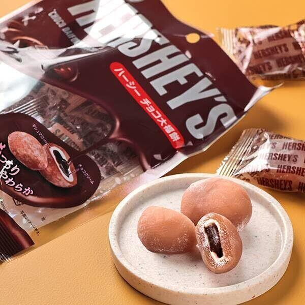 アメリカの大手菓子メーカー「ハーシー」とコラボレーションした一口サイズの大福です。もちもちとしたやわらかなお餅の中に、ハーシーのチョコクリームとマシュマロが入っているのが特徴です。