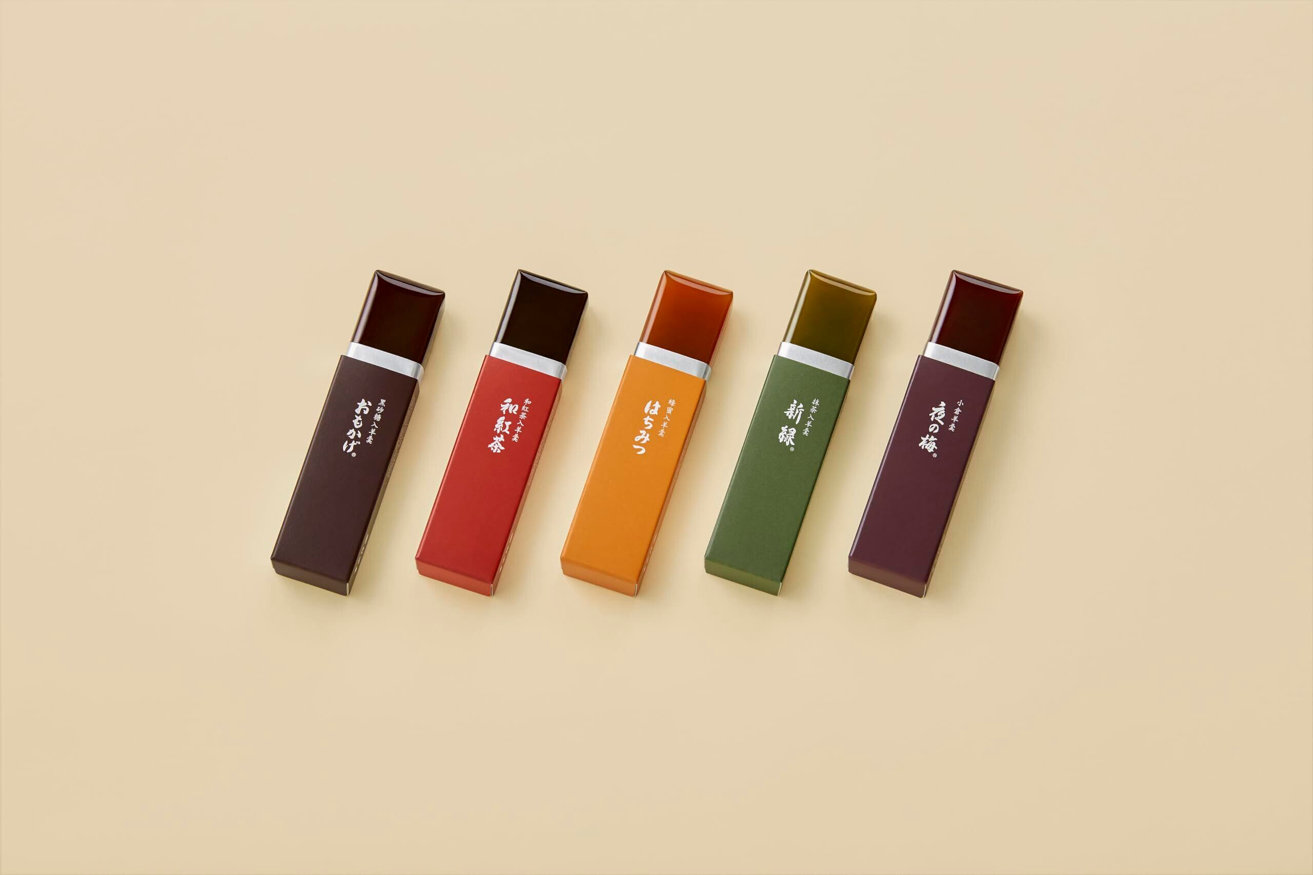 小形羊羹「夜の梅」「おもかげ」各6点、「新緑」「はちみつ」「和紅茶」各4点の詰合せ