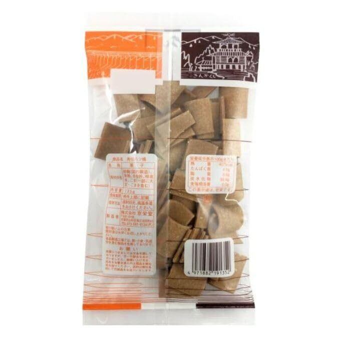 昔ながらの堅い八ツ橋。でもこの堅さがいいですね!京銘菓伝統の美味しさが楽しめます。角切八ッ橋は米粉を蒸し砂糖、桂皮末(シナモン)、ごまを混ぜ蒸し上げ、きな粉をまぶして焼き上げた堅焼き八ツ橋です。パリパリ香ばしく、日本茶のお供にぴったりです。衣掛八ッ橋も瓦の形をした代表的な京の味。 米粉・砂糖・ニッキを原料に歯ごたえの良い素朴な風味をお楽しみください。