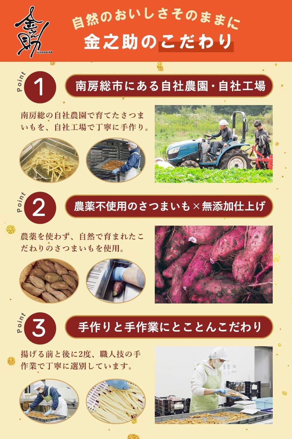 お客様サポート:ご不明な点やご質問がございましたら、いつでもお気軽にお問い合わせください。『金之助 無添加芋けんぴ』で、心豊かなひと時をお楽しみください!