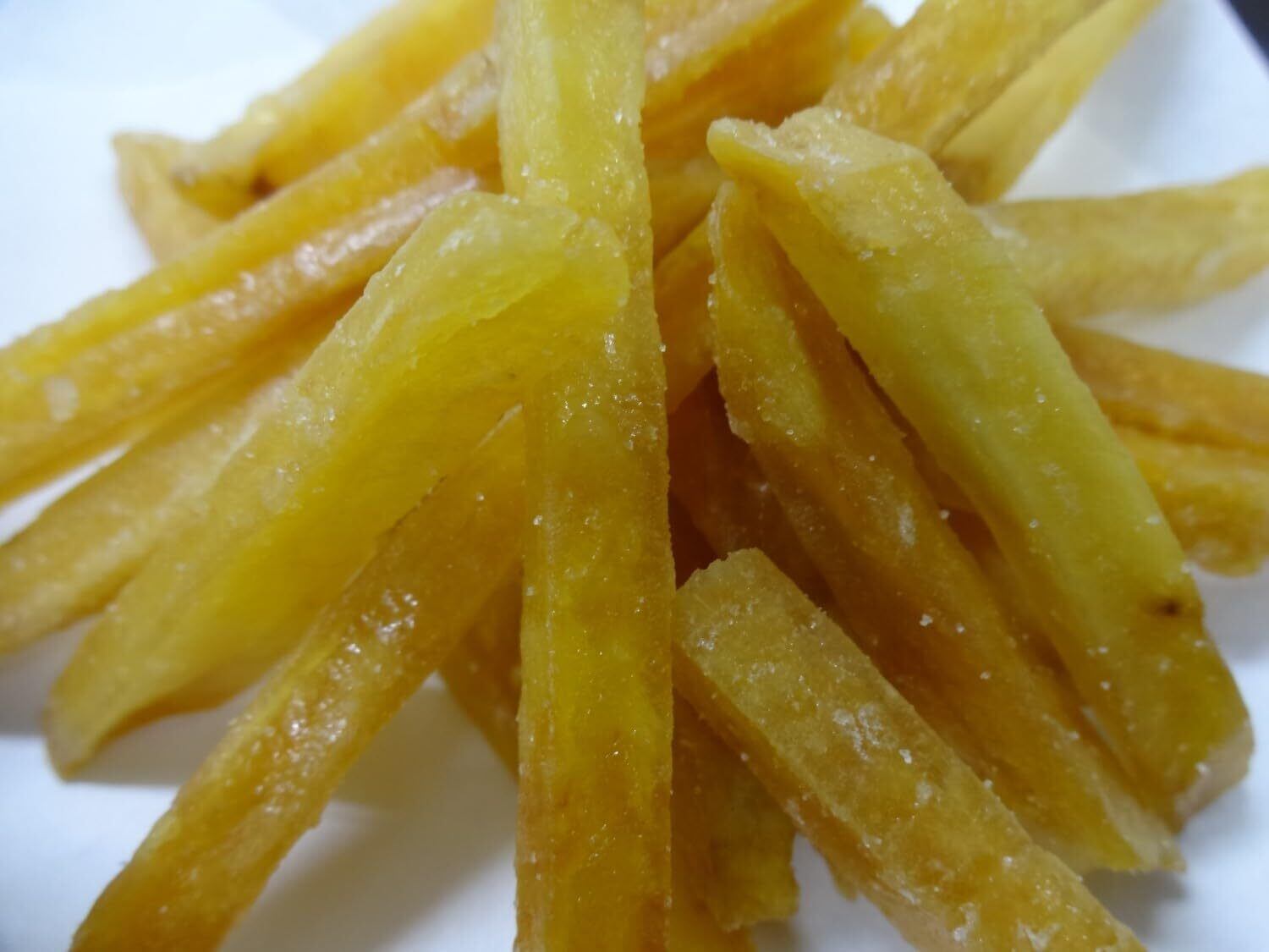 さつま芋の産地である九州産さつま芋(コガネセンガン)を使用し、棒状にカットした後、油で揚げて砂糖蜜に絡めた、さつま芋のお菓子です。使用しておりますコガネセンガンという品種のさつま芋は芋けんぴに最適でお砂糖との相性もとてもいいです。昔ながらの製法でシンプルな原材料を使用して製造いたしております。