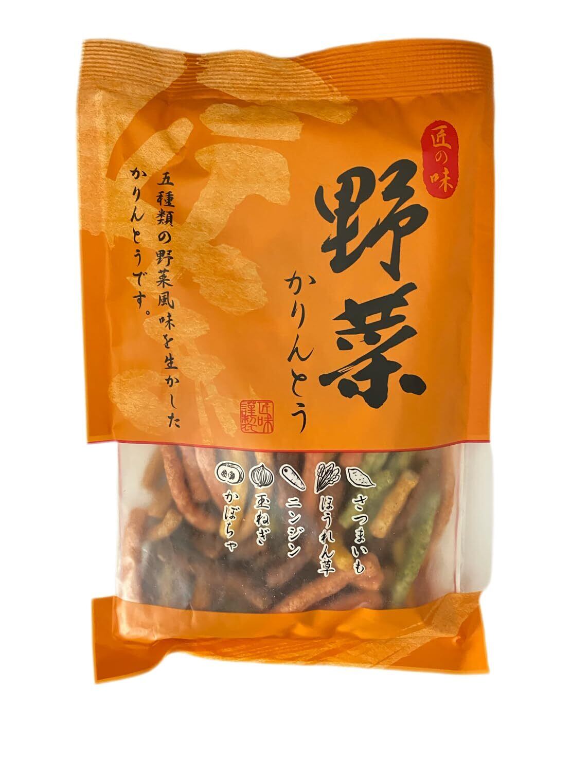 「この野菜かりんとうは、各種の野菜の味わいが楽しめる一品です。おやつや軽食としてだけでなく、ちょっとしたパーティーやおもてなしにもぴったりです。健康を意識しつつ、美味しさも追求した特別なおやつとして、どんなシーンでも楽しんでいただけます。」
