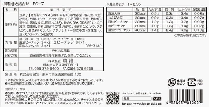海苔菓子 風雅巻き詰合せ 5種類21本入(FC-7)