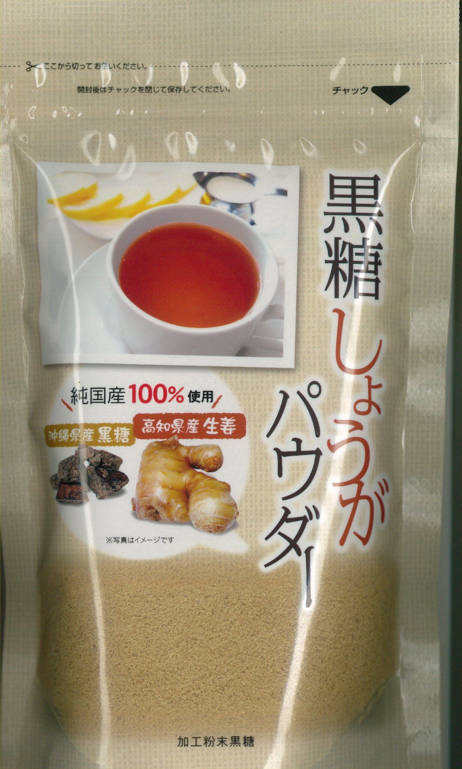 黒糖しょうがパウダーは国産のサトウキビから取れた原料糖と黒糖 高知県産の生姜をブレンドした加工粉末黒糖です。