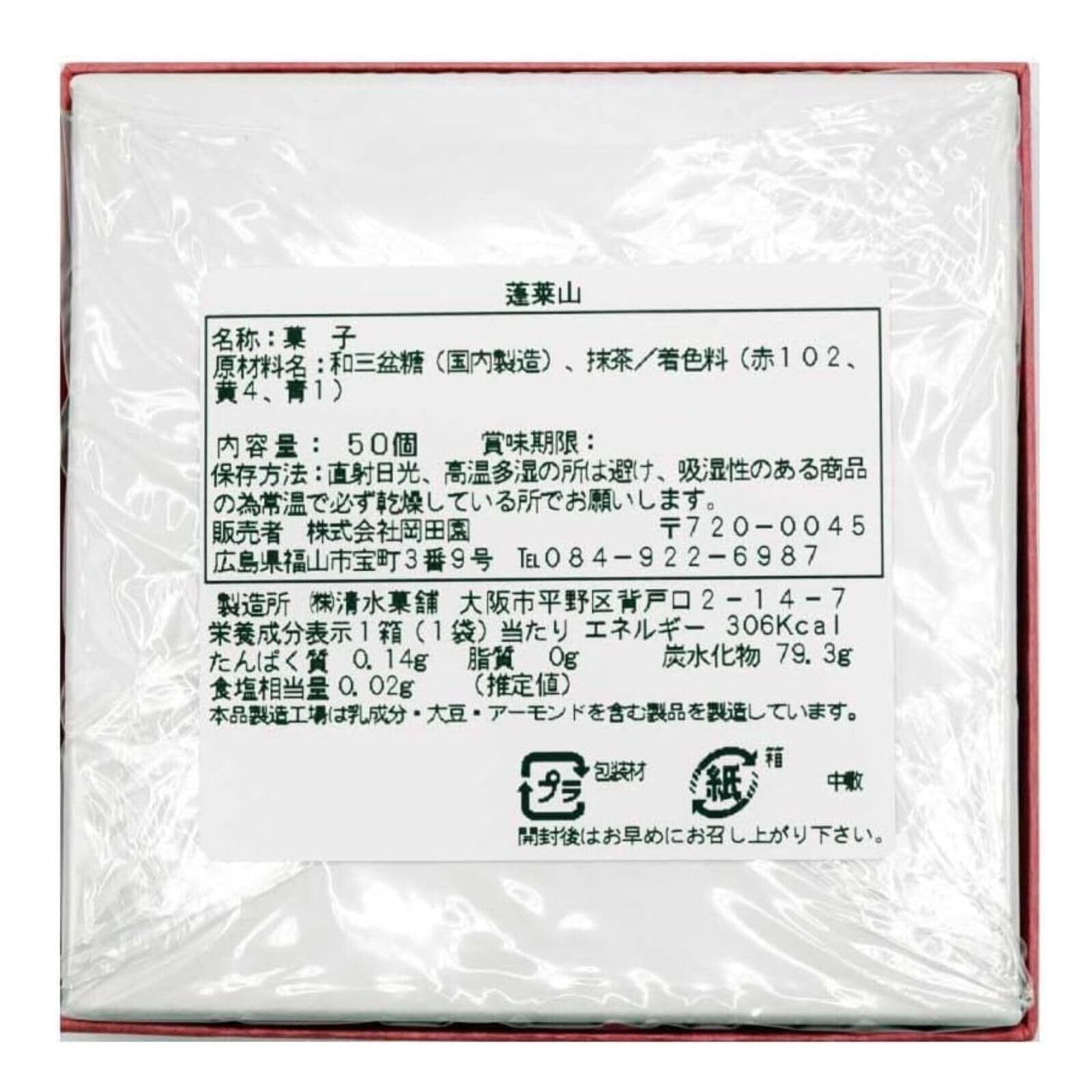 原材料名:和三盆糖(国内製造)、抹茶/着色料(赤102、黄4、青1)