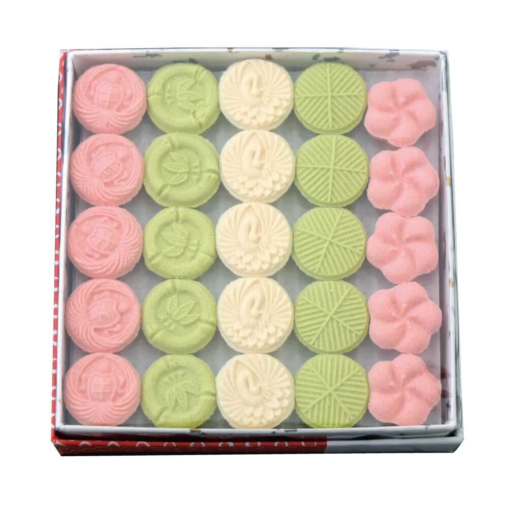 お客様サポート:ご不明な点やご質問がございましたら、いつでもお気軽にお問い合わせください。『岡田園 蓬莱山 和三盆 干菓子 / 和三盆糖 御干菓子 落雁 らくがん 5型/3色 50個入』で、日本の伝統を存分に楽しんでください!