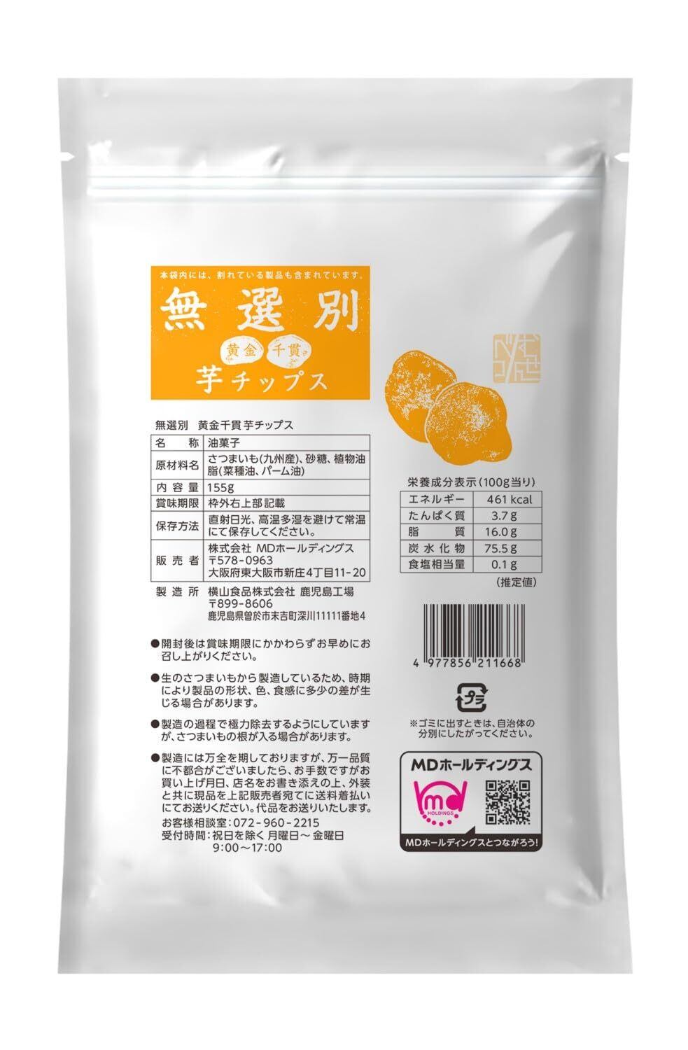 MD 無選別 黄金千貫芋チップス 155gx3袋