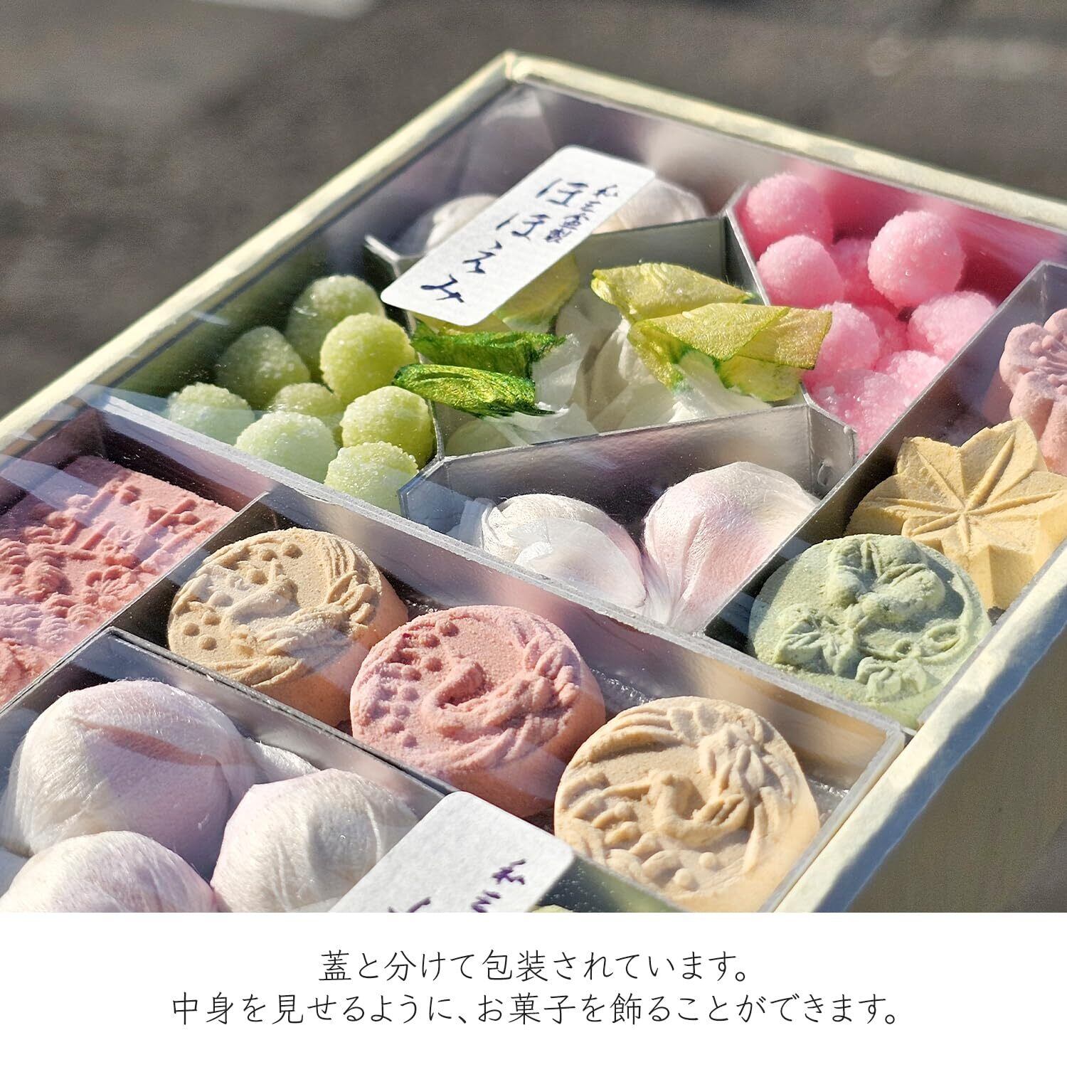 蓋と分けて包装されています。蓋を開け、お菓子が見えるように飾ることもできます。 そのため、神棚やお仏壇へのお供えや、飾りものとしてもお使いいただけます。