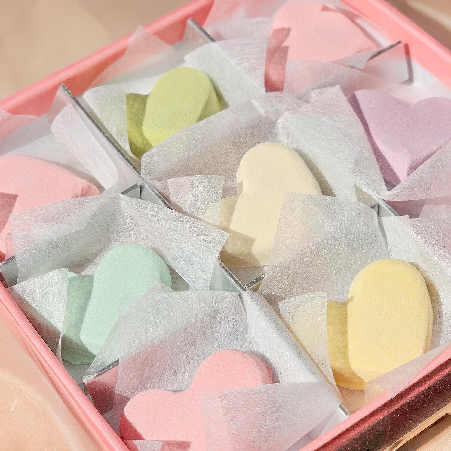 「このハート型のお干菓子は、色とりどりのデザインが施されており、視覚で楽しむだけでなく、口にすることでもその美味しさを感じられます。おしゃれなおもてなしやサプライズギフトとして、特別な瞬間に華を添える存在となるでしょう。」