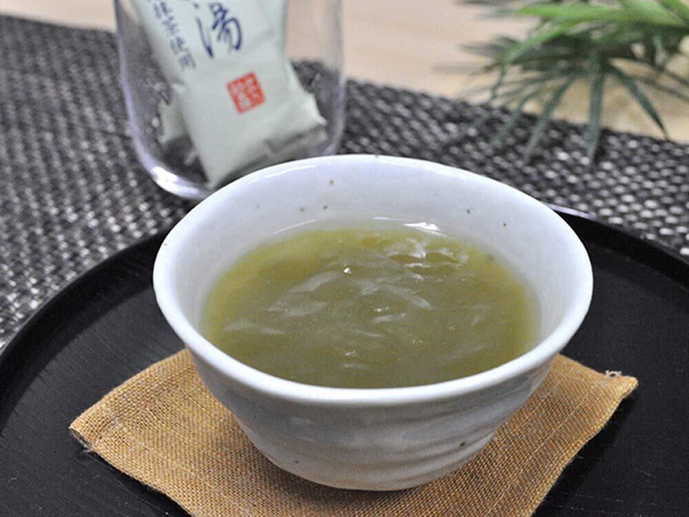 粉末になっていますので1袋をあたためたお椀の中に入れ沸騰したお湯約250ml(湯量はお好みで)を注ぎ、手早く混ぜて下さい。