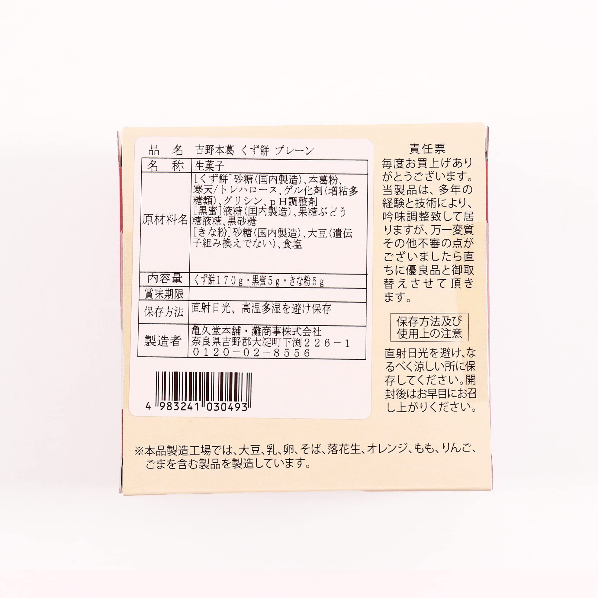 **\亀久堂本舗 奈良吉野本葛 くず餅 プレーン味 170g (黒蜜・きな粉 各5g付き)!贅沢な和のスイーツをお楽しみください!/**