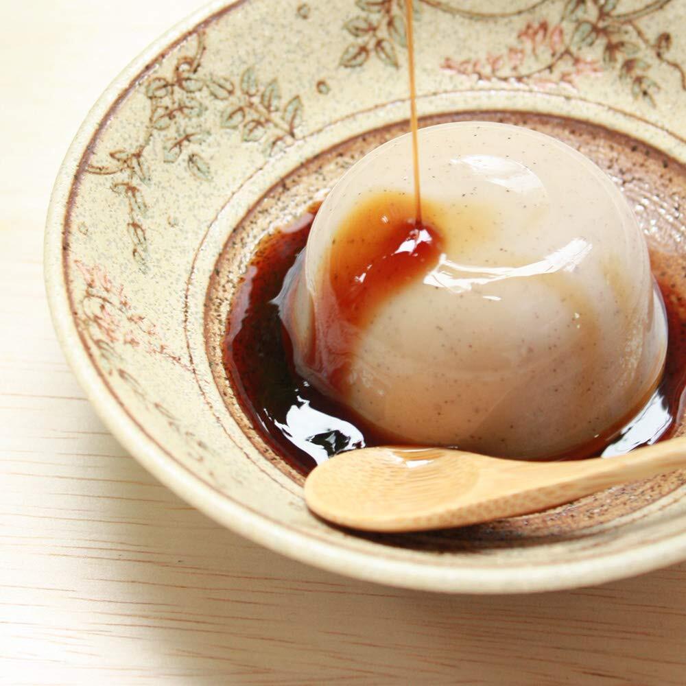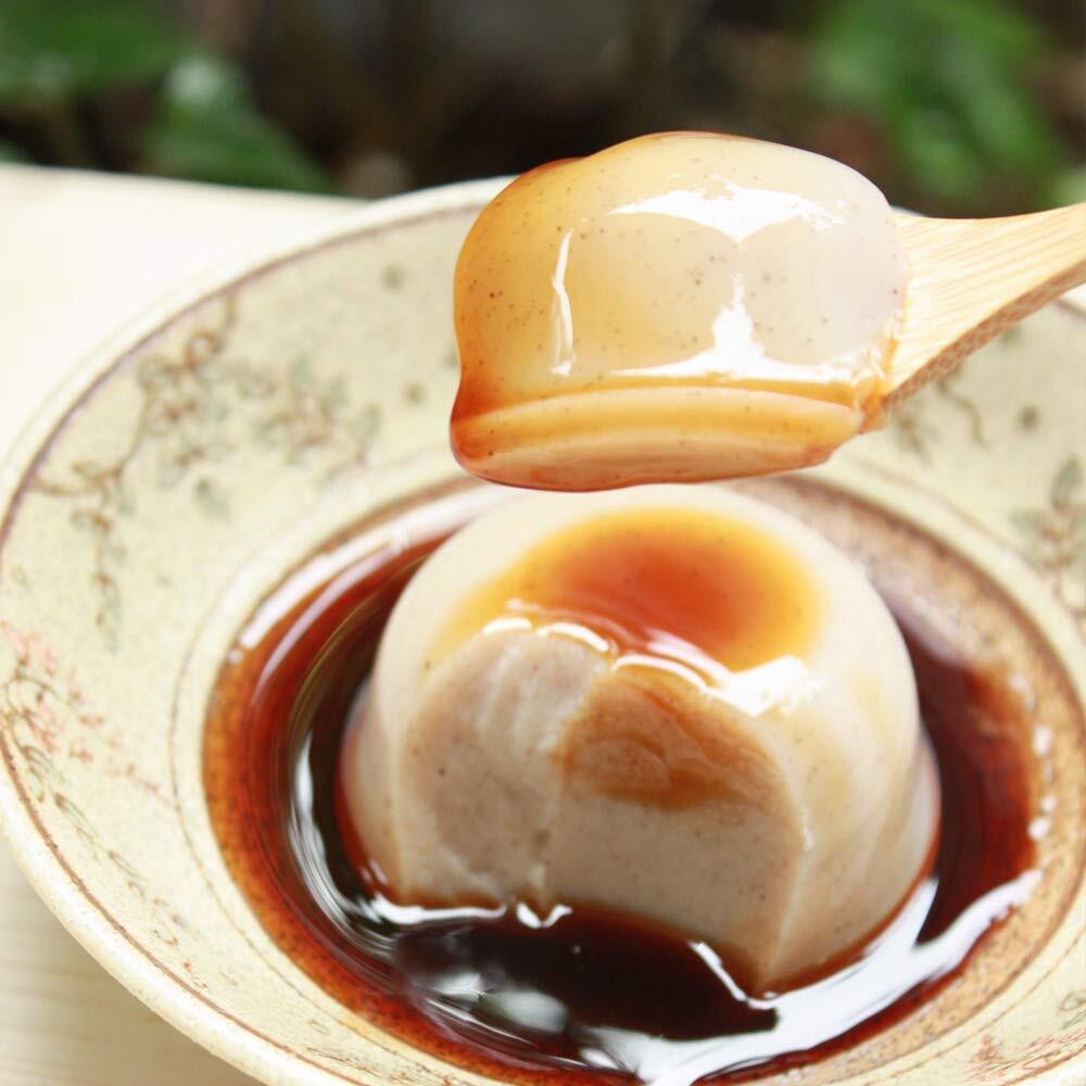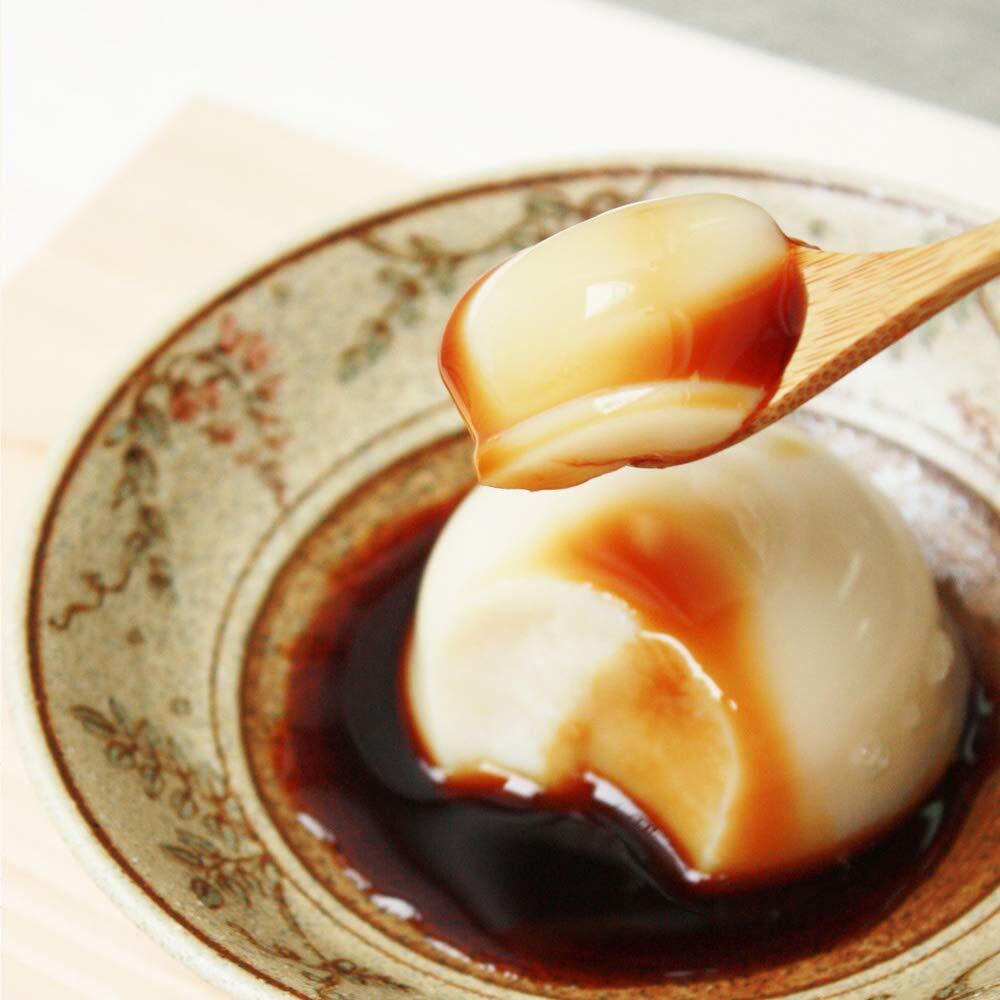 奈良県産の本葛と有機豆乳(遺伝子組換えでない)にこだわった、ふわりなめらかな食感の葛豆乳ムースです。そのままでも美味しいですが、湯煎して少し温めて頂くと出来立ての美味しさに!コクのある黒糖蜜をたっぷりとかけてお召し上がりください。