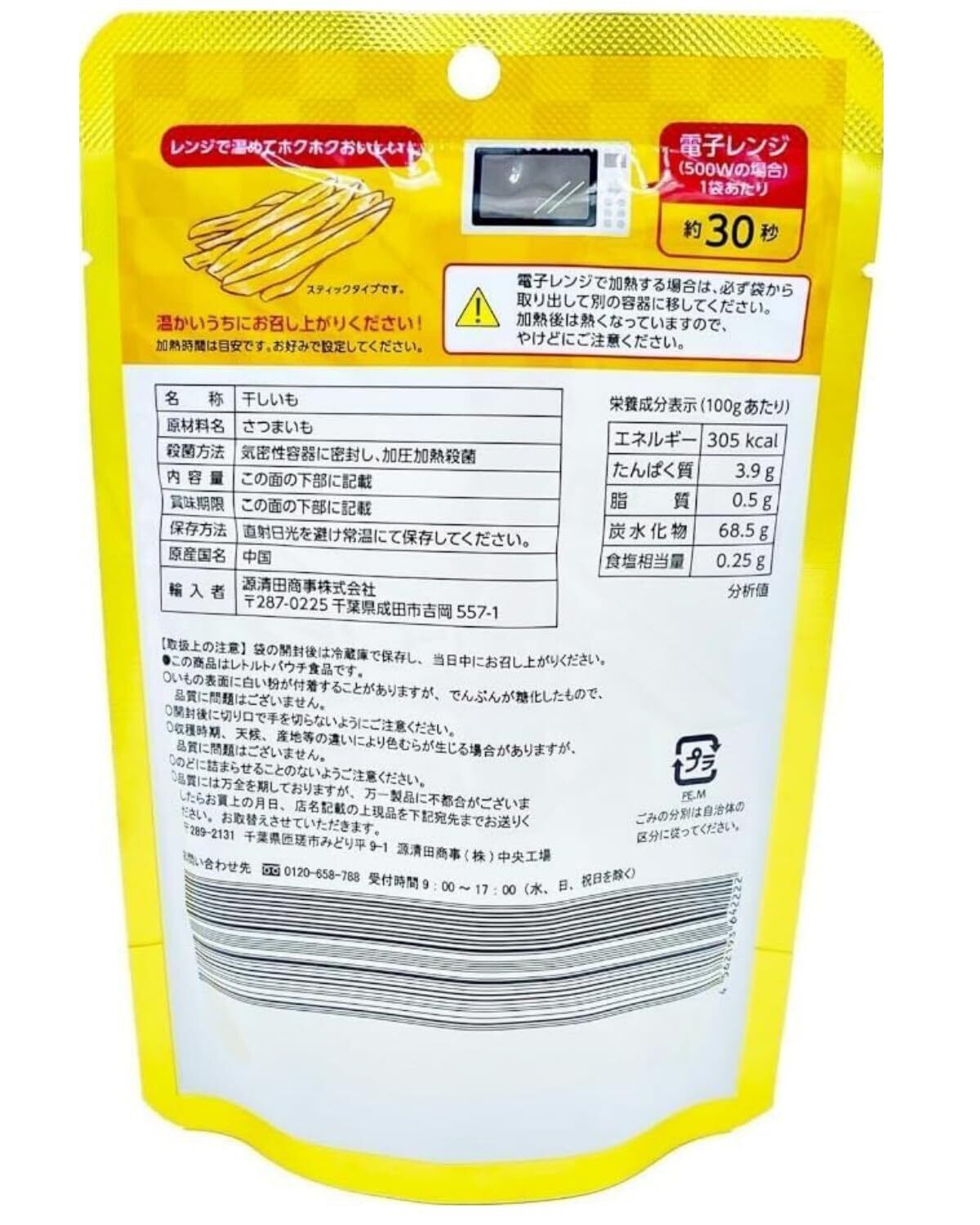 「『源清田商事 熟成焼き干し芋』は、無添加で作られており、安心してお召し上がりいただけます。さつまいもの持ち味を引き出したこの干し芋は、健康にも配慮した商品です。自然のパワーを存分に味わってください!」