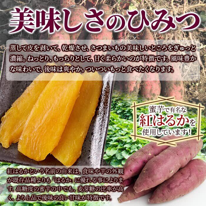 - 九州県産の紅はるかを使用した、しっとりやわらかな干し芋!