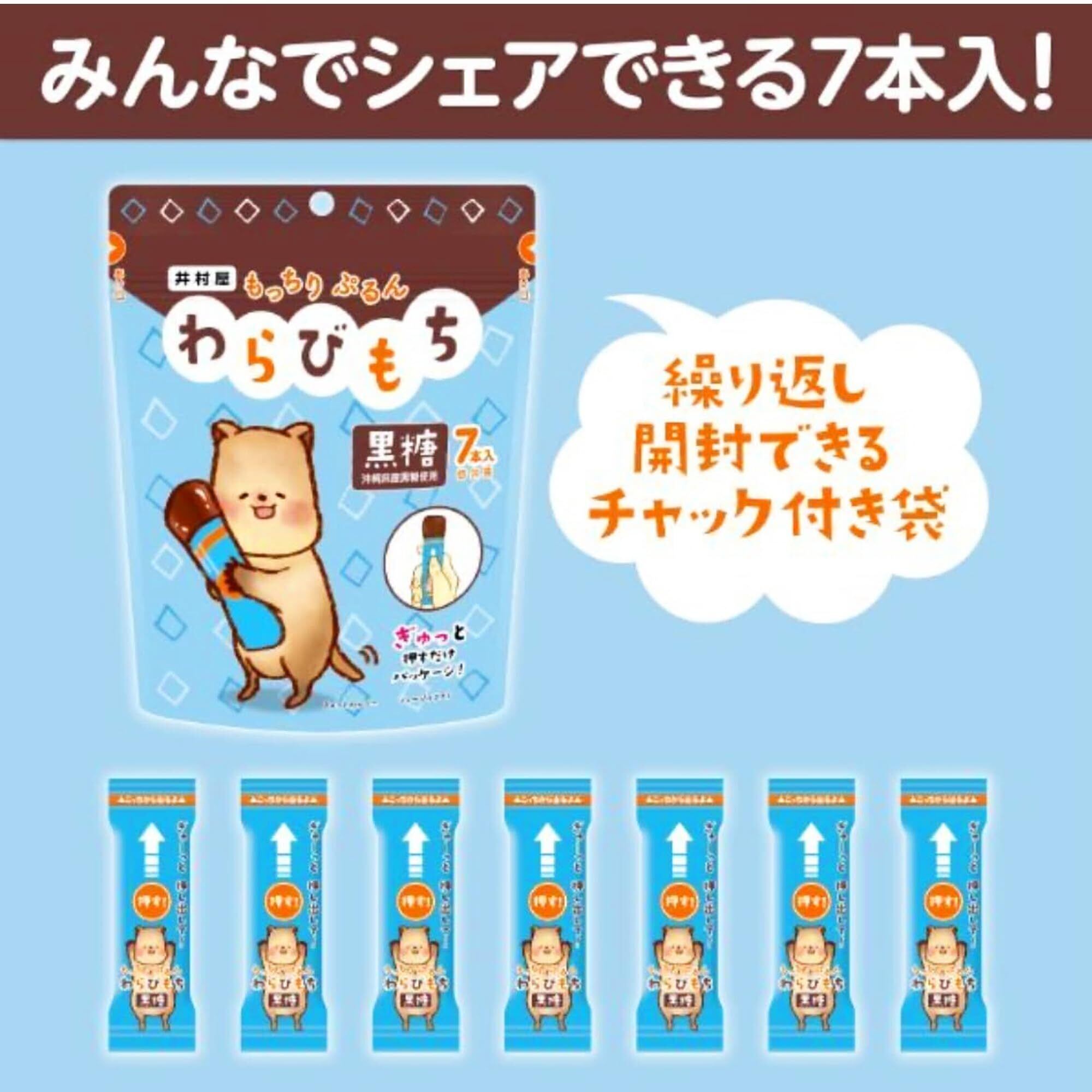 「『井村屋 もっちりぷるんわらびもち 黒糖』は、伝統的な製法で作られた本格的なわらびもちです!15g入りの棒状パッケージが7本セットになっており、手軽にそのまま美味しさを楽しむことができます。」