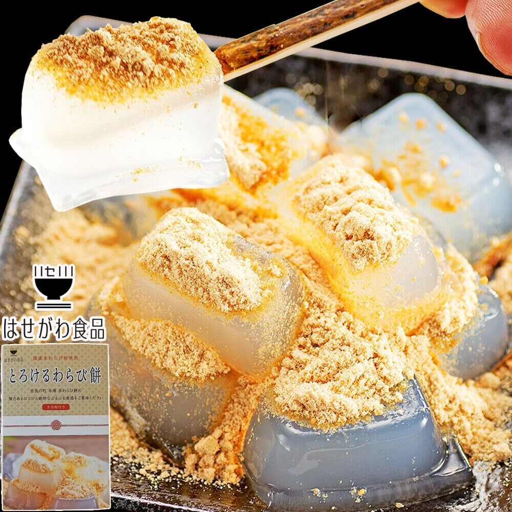 「『奈良の町 本場 とろける 本わらび餅』は、国産の本わらび粉をふんだんに使用した、極上の和菓子です!120g×2袋入りで、きな粉がついており、お好みに合わせてお楽しみいただけます。」