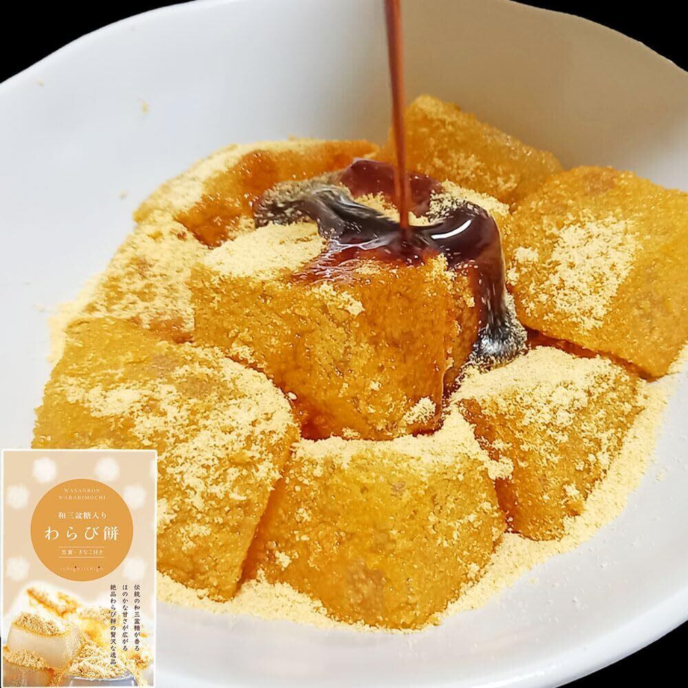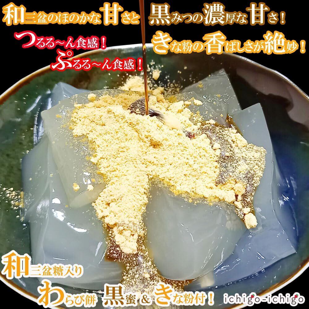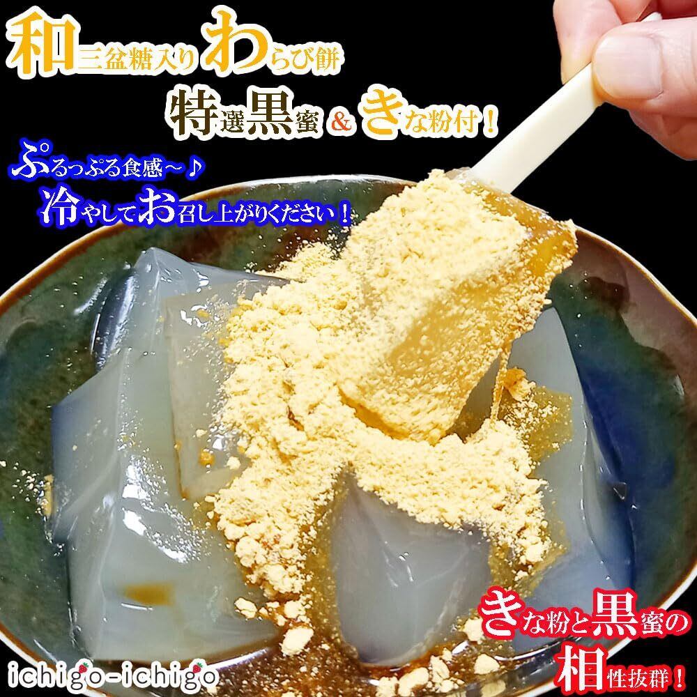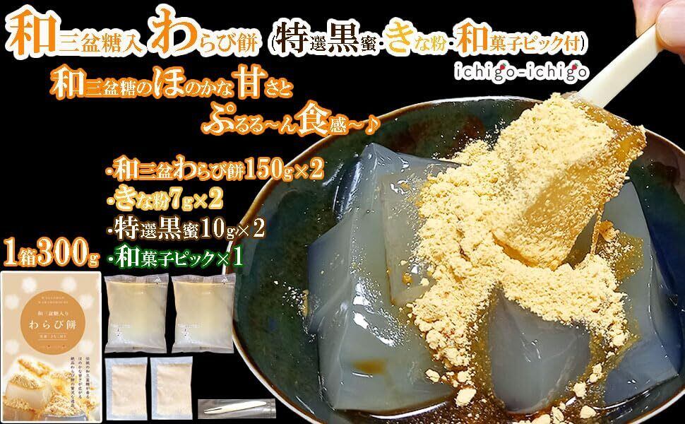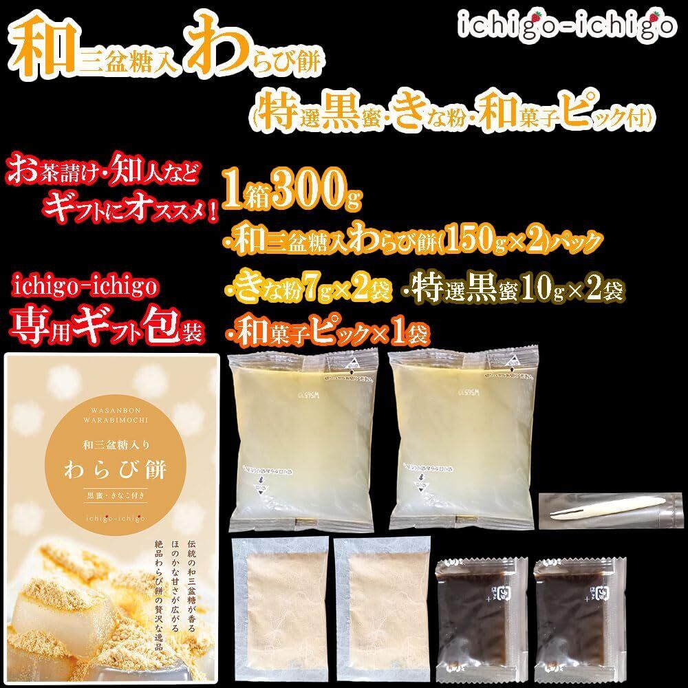 ichigo-ichigo 和三盆糖入り わらび餅 ギフト 1箱 300g (150g×2・きな粉×2・黒蜜×2) 和菓子 国産 本わらび餅粉 お菓子 詰め合わせ わらびもち 業務用 母の日ギフト 父の日 プレゼント