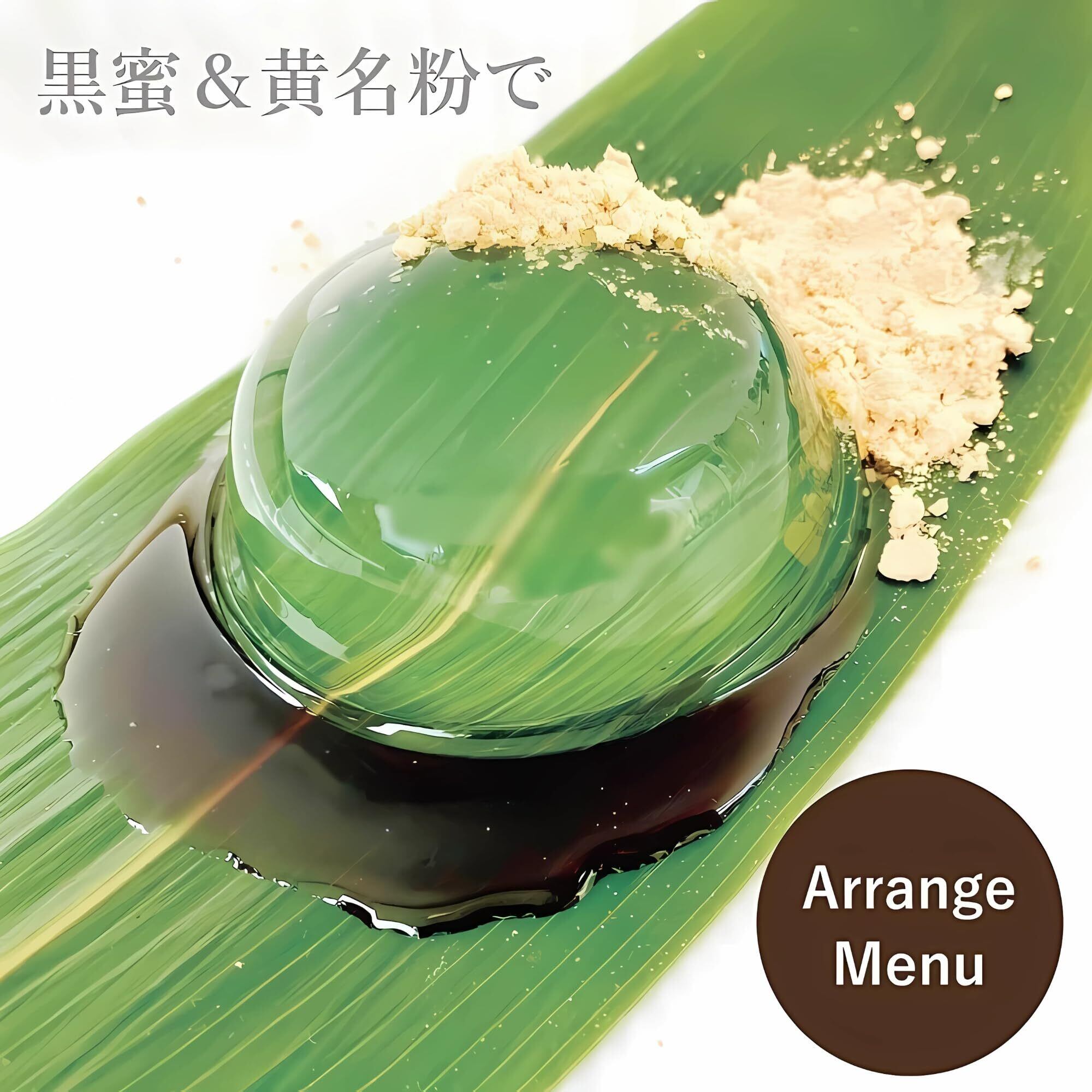 【✨アレンジ自在で自由に楽しめる】甘さ控えめの水わらびもちは、そのままでもすっきり上品な味わい。お好みで黒蜜やきな粉、フルーツソースなどを添えて、自由な和スイーツアレンジを楽しめます。