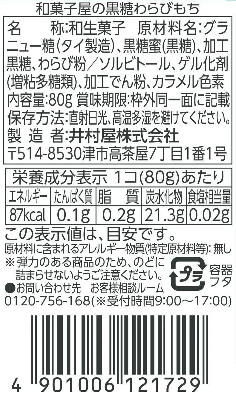お客様サポート:ご不明な点やご質問がございましたら、いつでもお気軽にお問い合わせください。『井村屋 和菓子屋の黒糖わらびもち』で、心豊かな和デザートのひとときをぜひお楽しみください!