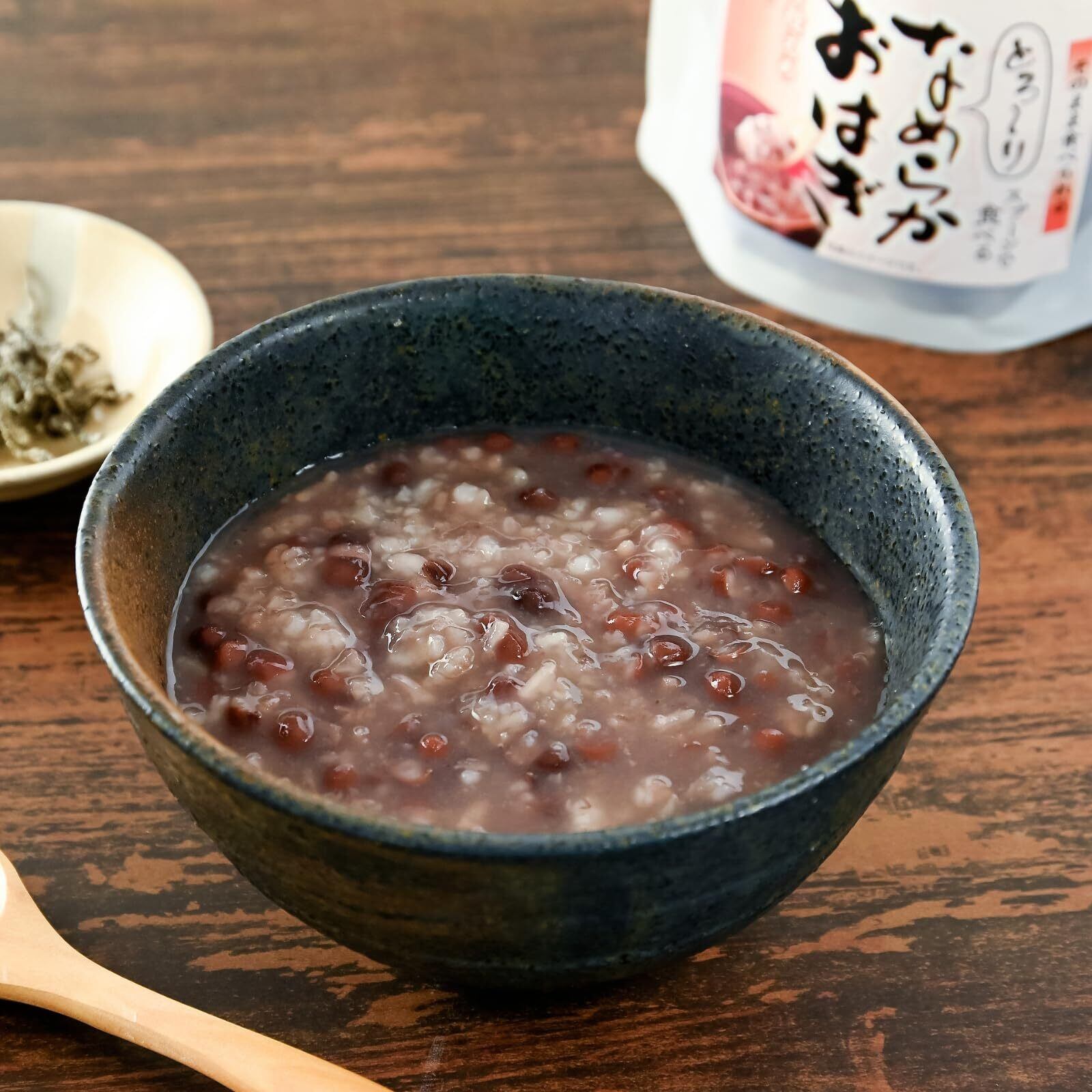 日本の伝統的な和菓子「ぜんざい」と「おはぎ」を融合させた商品です。 小豆を職人が炊き上げる当社自慢のぜんざいに、お米の程よい食感を合わせ、スプーンで食べられる「おはぎ」のように仕上げました。 お米の甘さを感じられるよう、当社ぜんざいに比べ、てん菜糖の量を抑えています。 原材料は、北海道産小豆、国産てん菜糖、国産米、国産食塩の良質なものだけを厳選しており、安心してお召し上がりいただけます。 パウチは電子レンジ対応で、開封後はワイドにオープンする自立型を使用しています。 手軽に温めることができ、そのまま器としてもご使用できます。 温めても、冷やしても、そのままでも美味しく、 職場やご家庭、アウトドア、災害時などさまざまなシーンで、なめらかでとろりとした食感をすぐに手軽にお楽しみいただけます。