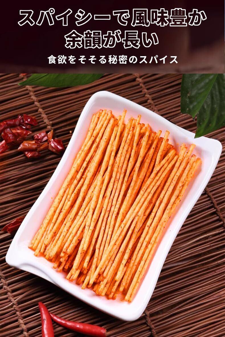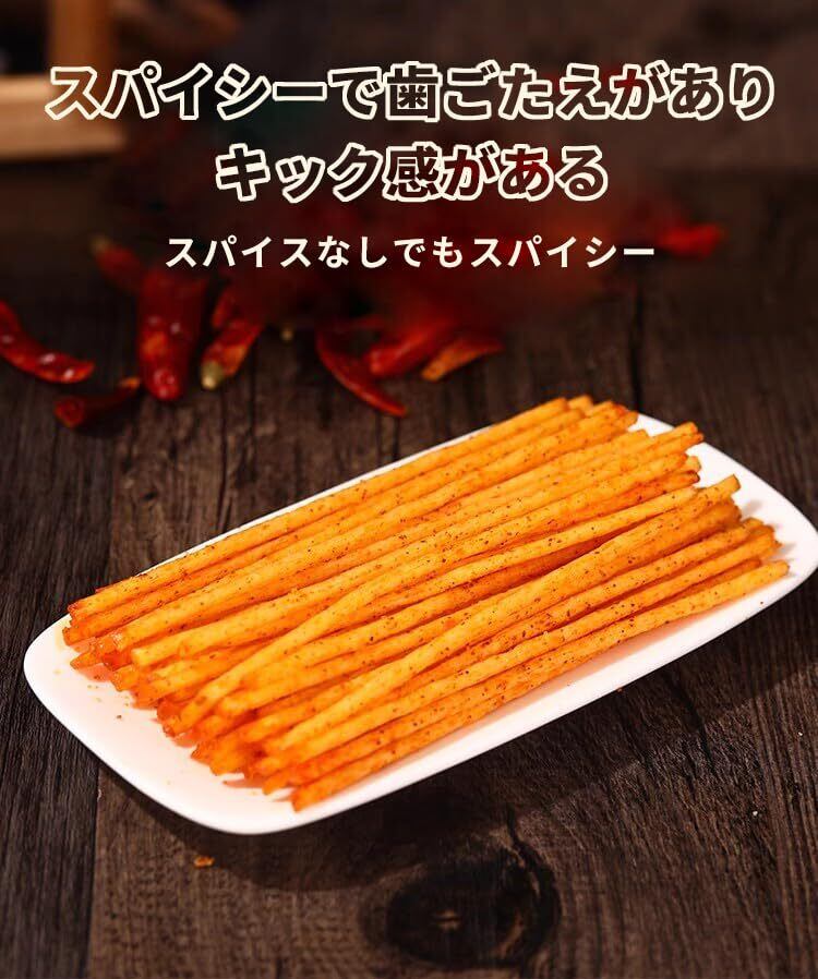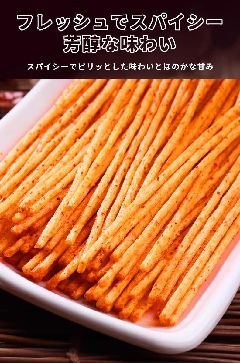 【カリカリ食感】チリスティックは、その独特のカリカリした食感で愛されている。外側の層は特別に焼かれ、かなり乾燥してカリカリになっている。噛むとサクッと音がする。 サクサクとした食感が快感を与え、次から次へと噛まずにはいられません。