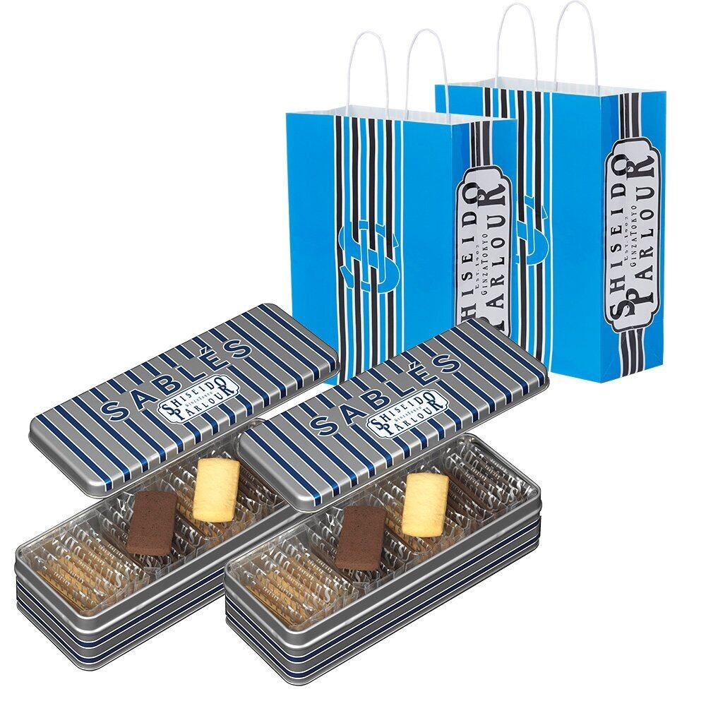 お菓子 【 手提げ袋付 】資生堂パーラー サブレ22枚入 2個セット スイーツ おしゃれ 缶 手土産 お祝い 包装 御礼 贈答 暑中見舞い 父の日 お返し ランキング カカオ ココナッツ プレゼント ショッパー付き ギフト 人気