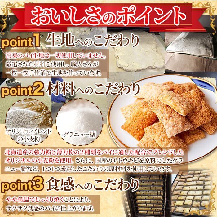 【おいしさのポイント】冷凍のパイ生地は一切使わずパイに適した配合でブレンドしたオリジナルの小麦粉など厳選したこだわりの原材料を使用しています。やや低温で焼くことによりサクサク食感のパイに仕上げています。