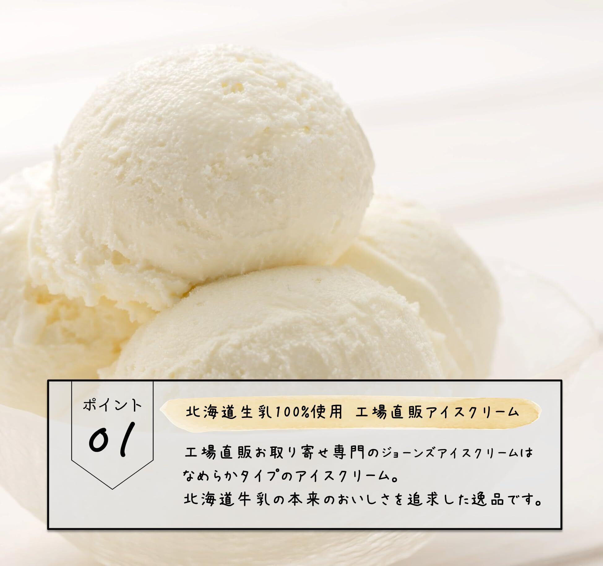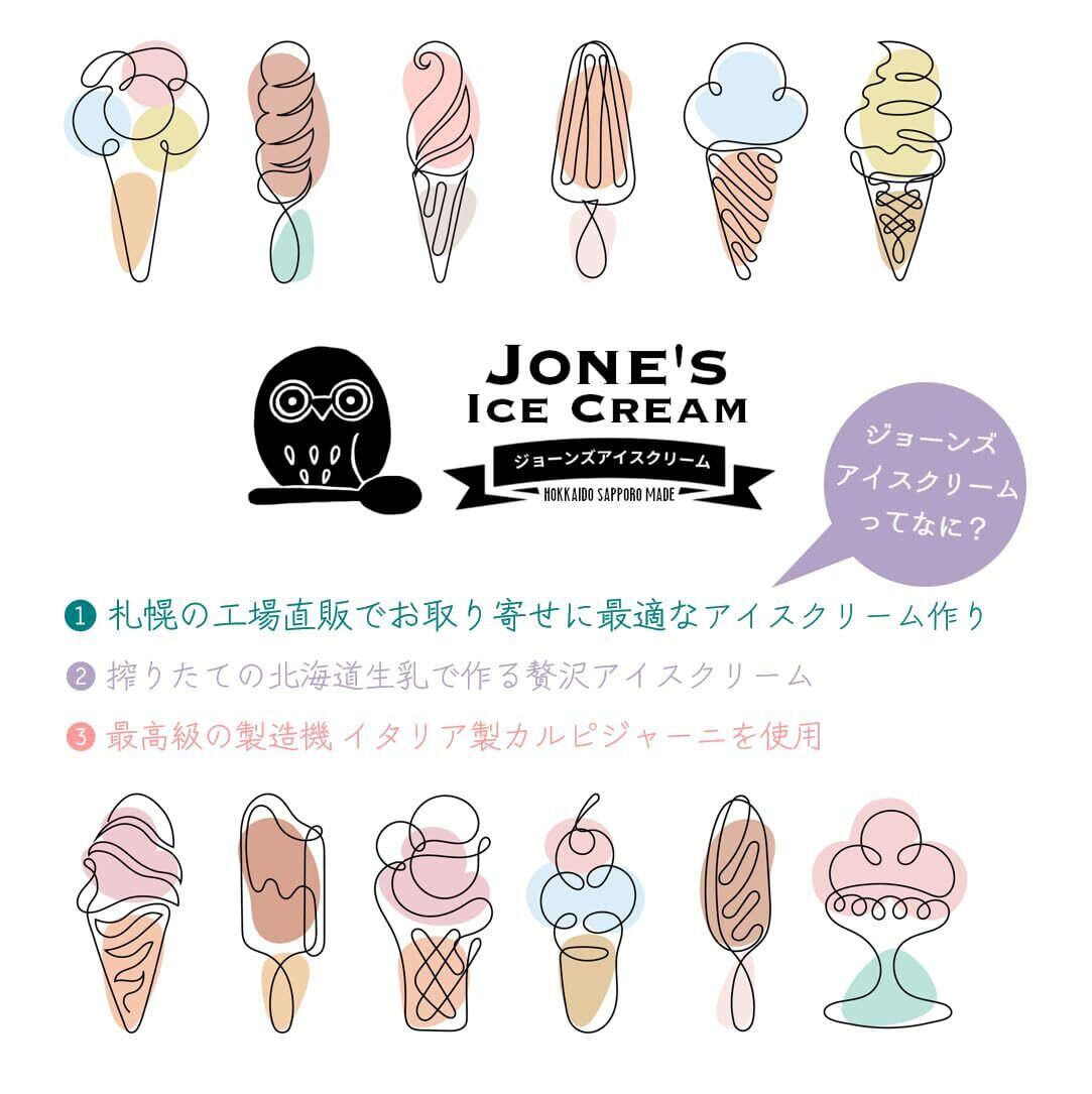 ジョーンズアイスクリームはひんやりなめらかタイプのアイスクリーム。北海道生乳・水・最高級アイス製造マシンのカルピジャーニ製で作るこだわりのアイスクリームです。