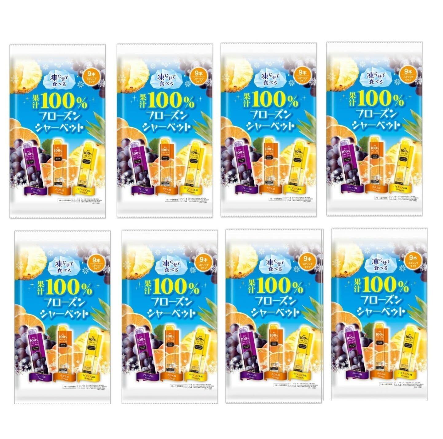 **\リボン 果汁100%フローズンシャーベット 9本 (8袋)!贅沢な果実の味わいを堪能しよう!/**