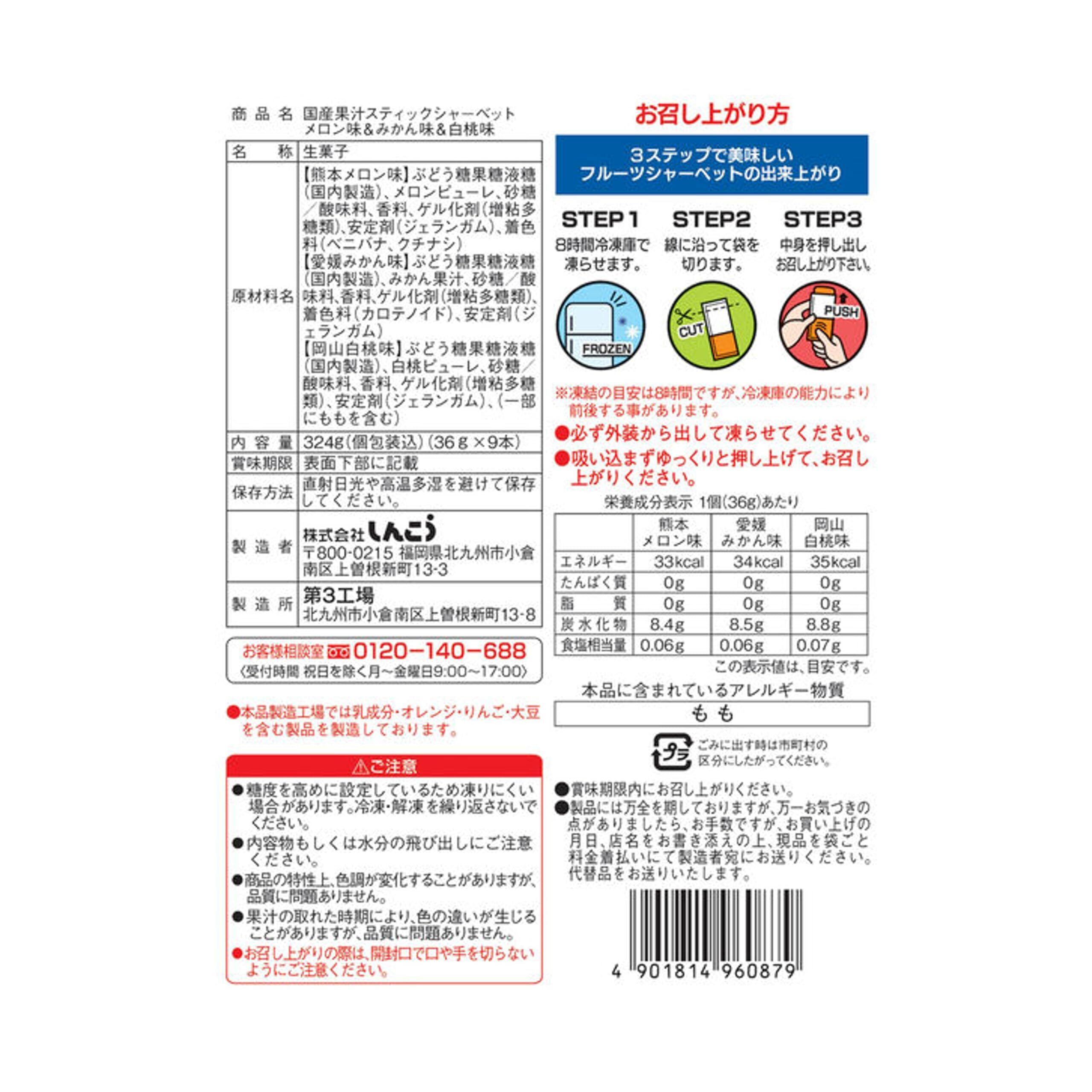 **\しんこう 国産果汁 スティックシャーベット9本入!メロン・みかん・白桃、マンゴー・いちご・マスカットの2種セットで果実の恵みを味わおう!/**