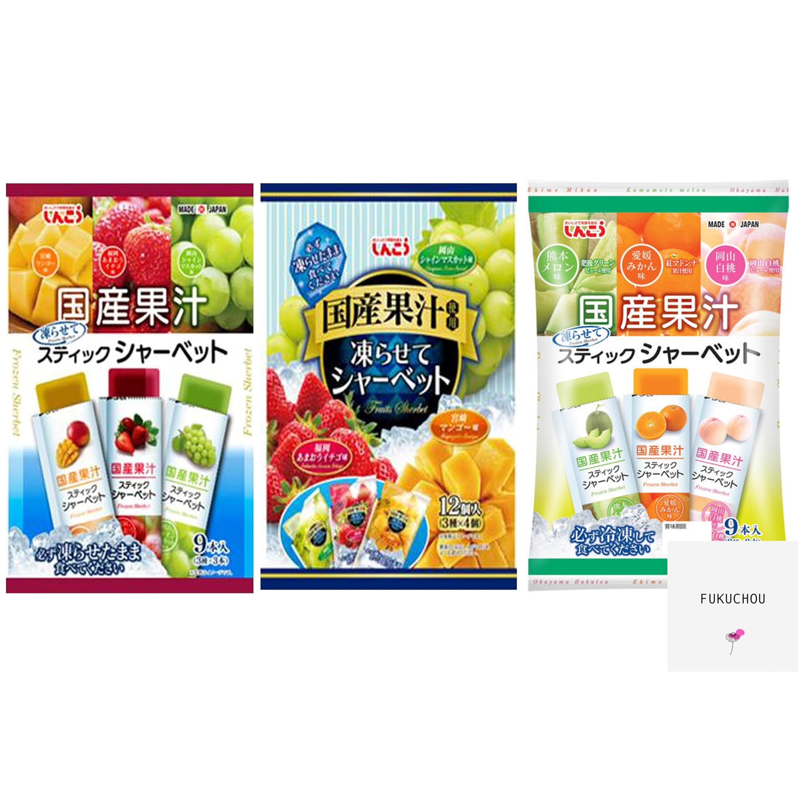 しんこう 国産果汁 スティックシャーベット9本入 2種(メロン・みかん・白桃) (マンゴー・いちご・マスカット) 国産果汁 凍らせてシャーベット12個入 (マンゴー・いちご・マスカット)計3個セット FK