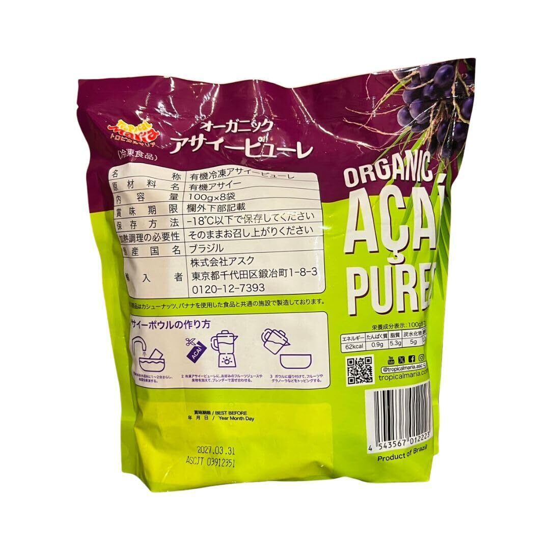 【 オーガニック アサイー ピューレ 】トロピカルマリア 無糖 800g [100gx8本] 冷凍 (1袋(800g))