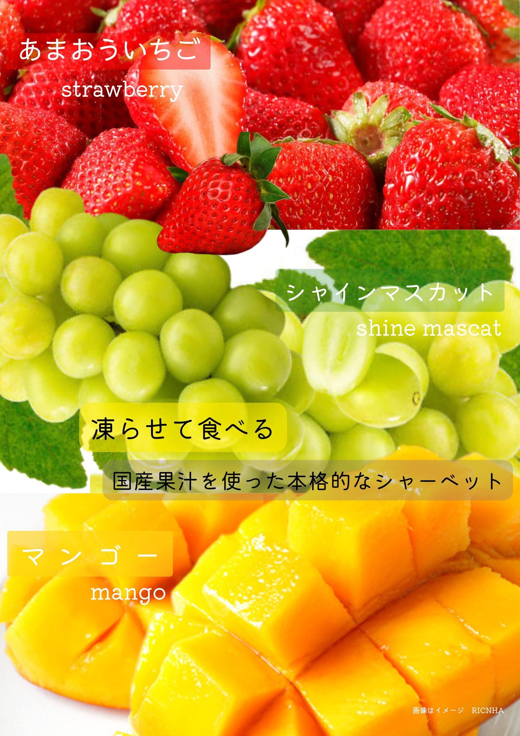 - 国産果汁をたっぷり使用したフルーティーなシャーベット!