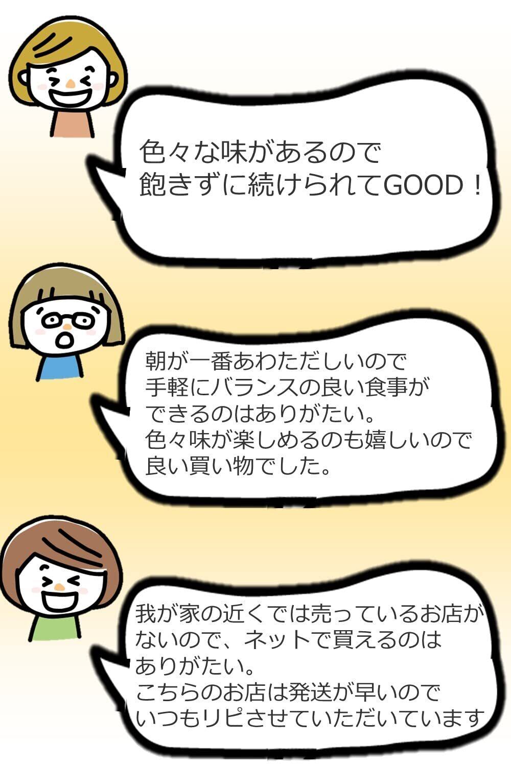 「健康や栄養を気にしている方にも喜ばれるバランスパワー。家族全員でシェアできるので、みんなで楽しむのにも最適です。あなたの毎日をサポートする、心強い栄養補助食品です!」