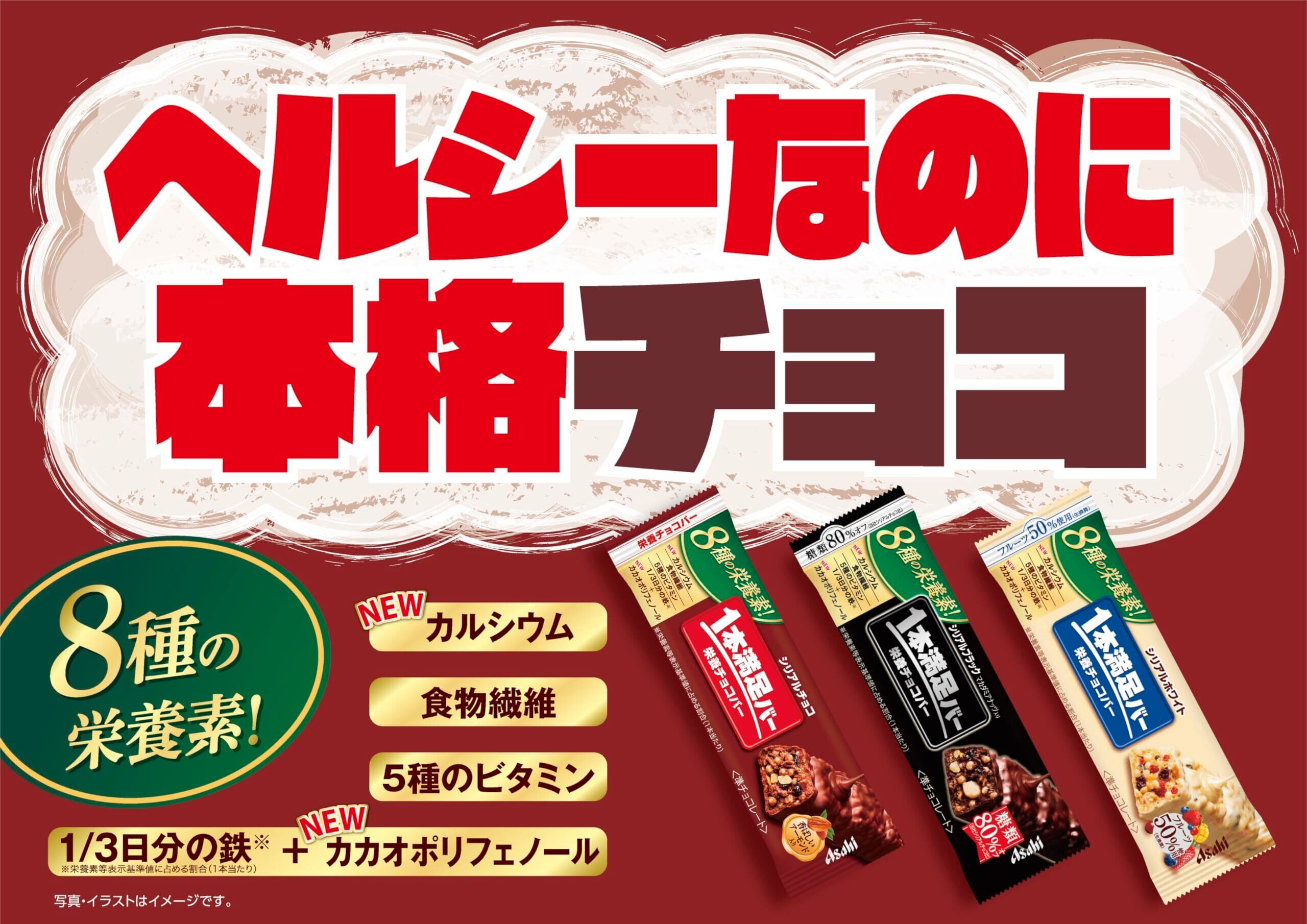 「『アサヒグループ食品 1本満足バー シリアルブラック糖80%オフ チョコレート 1本×9本』は、糖分を気にする方も安心して楽しめる、80%オフのチョコレート味のシリアルバーです!おやつとしてだけでなく、栄養補給にもぴったりな商品です。」