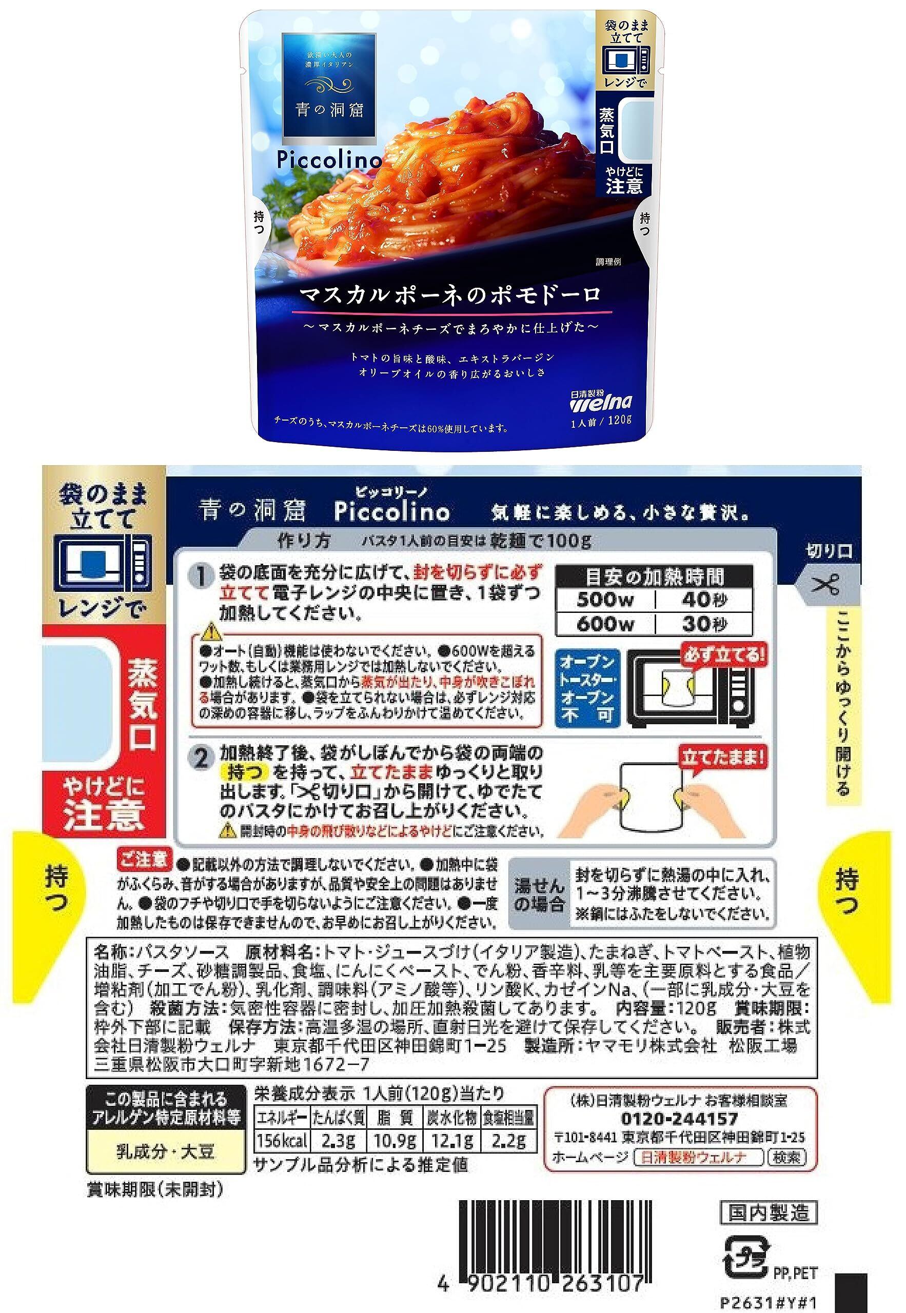 青の洞窟 Piccolino パスタソース 7種セット 電子レンジ ( ボロネーゼ / カルボナーラ / ポモドーロ / あさりと帆立のラグー / きのこクリーム / 海老のトマトクリーム / イカスミのソース ) 個包装 防災 簡単 時短 調理( 常温保存 / 常備食 )