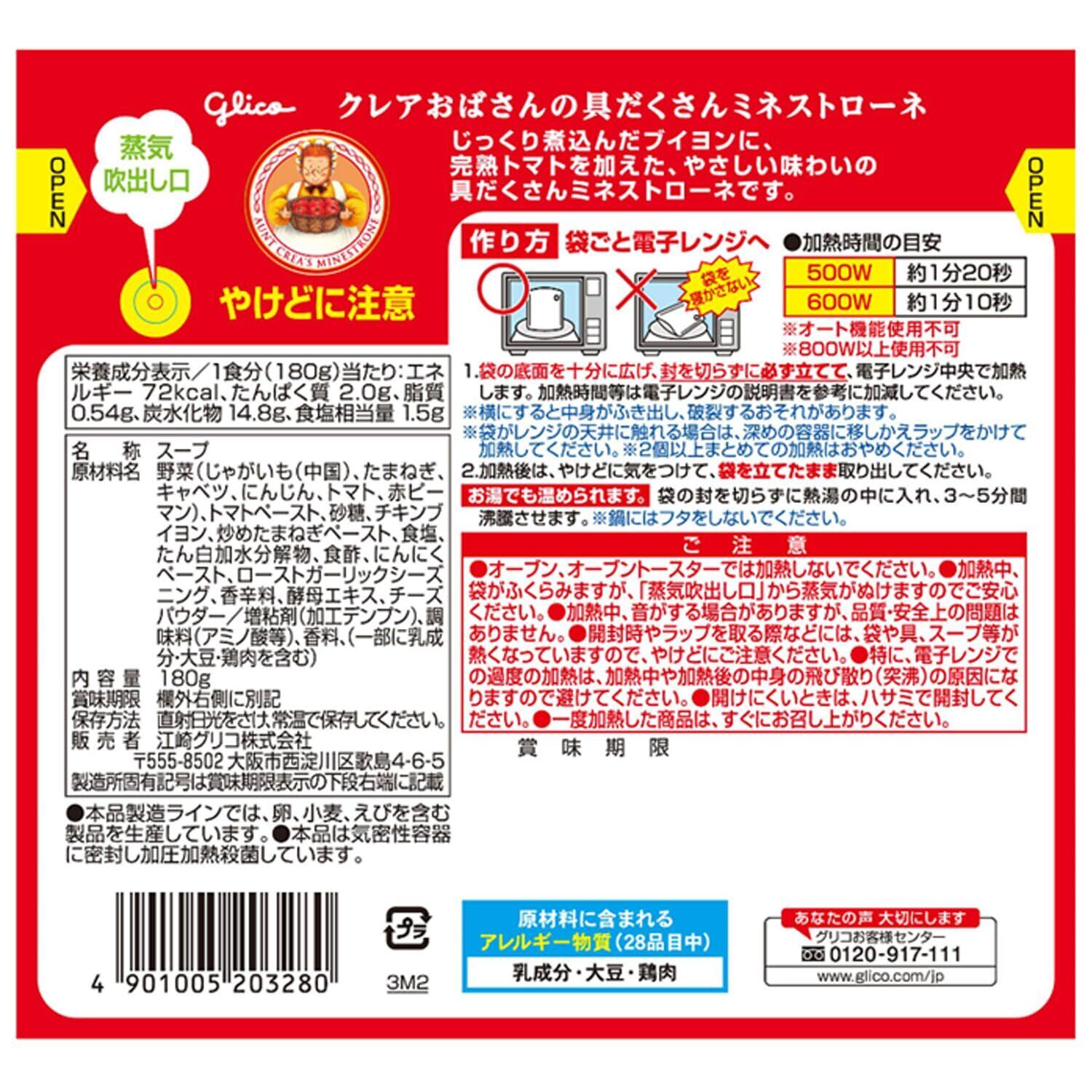 クレアおばさんの具だくさんミネストローネ 180g×5個 江崎グリコ (常温保存/非常食/備蓄/ローリングストック/レトルト/レンジ対応)