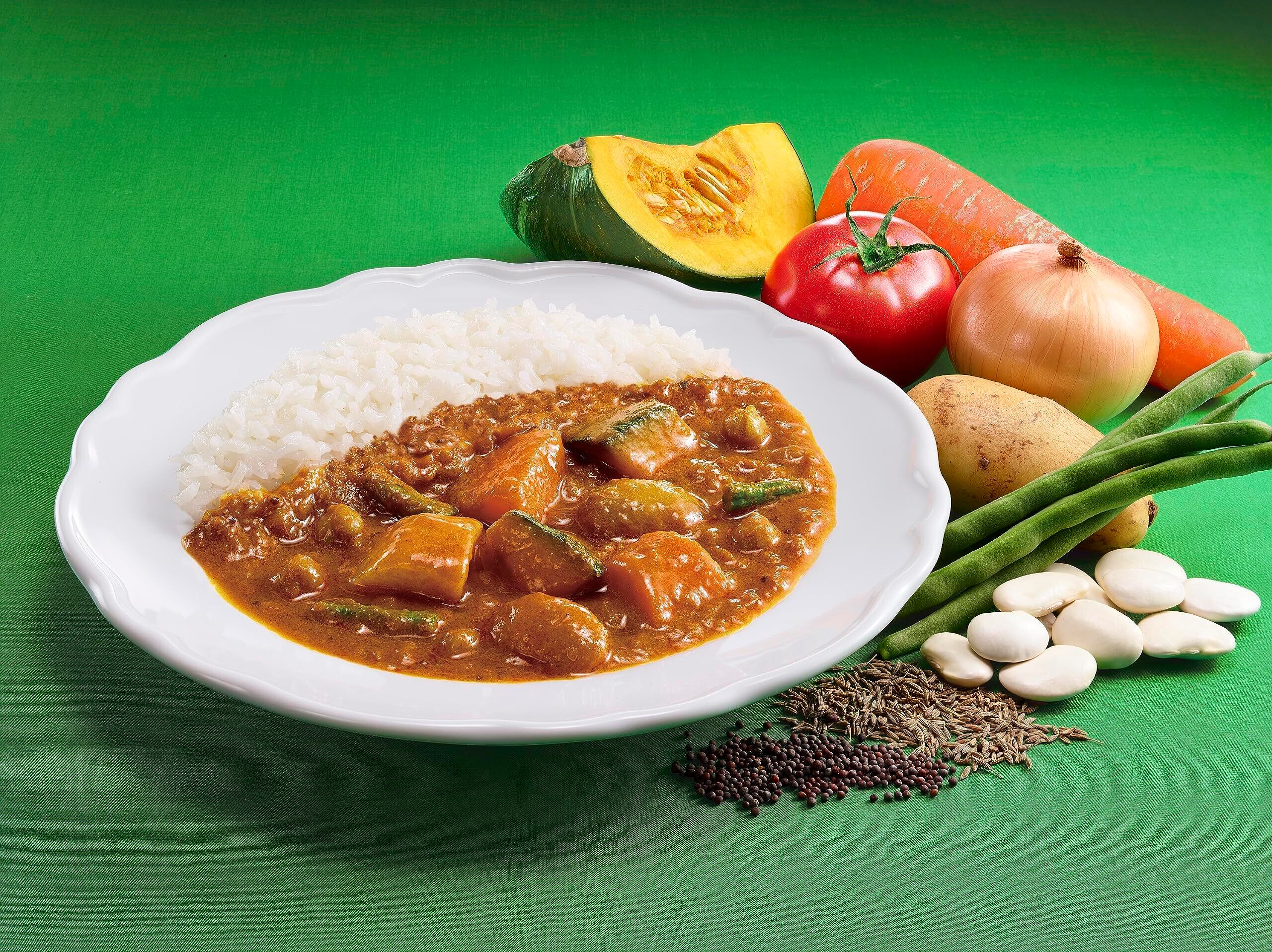 食べごたえのある大きくカットしたかぼちゃ、じゃがいも、にんじん、豆の女王「白花豆」など6種のたっぷり具材。スパイス3段仕込み製法で仕上げた芳醇な香リと、野菜から溶け出す自然で濃厚な甘みと旨みがコク深いベジタブルカリーです。レンジ調理できるようになりました。