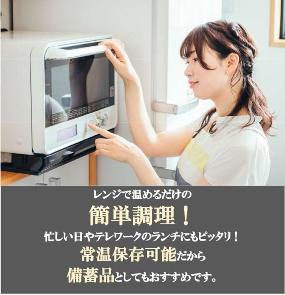 「パウチタイプなので、常温での保存が可能です。忙しい日のランチや急なおもてなしにも最適で、手軽に温めて食べられます。もちろん、非常食や備蓄食としても安心です。」