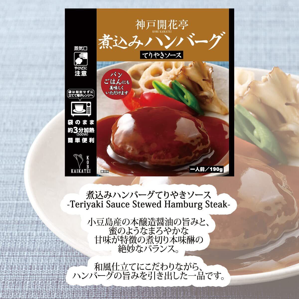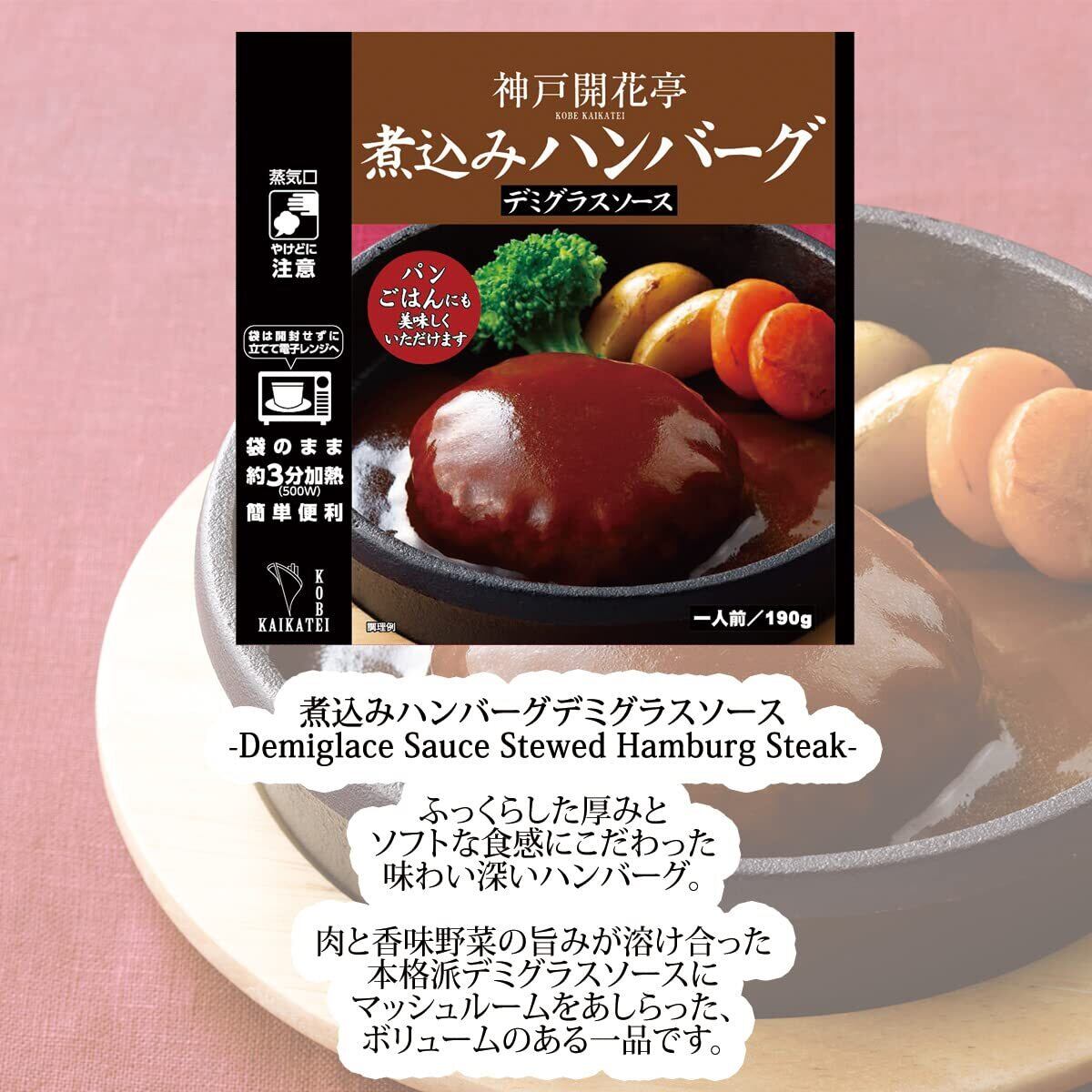「『神戸開花亭 レトルト食品 煮込みハンバーグ ビーフシチュー 4種9個入 セット』は、贅沢な味わいをコレクションしたレトルトおかずのセットです。煮込みハンバーグやビーフシチューなど、厳選された4種類のおかずを9個ご用意しており、特別な日の食卓を豪華に演出します。」
