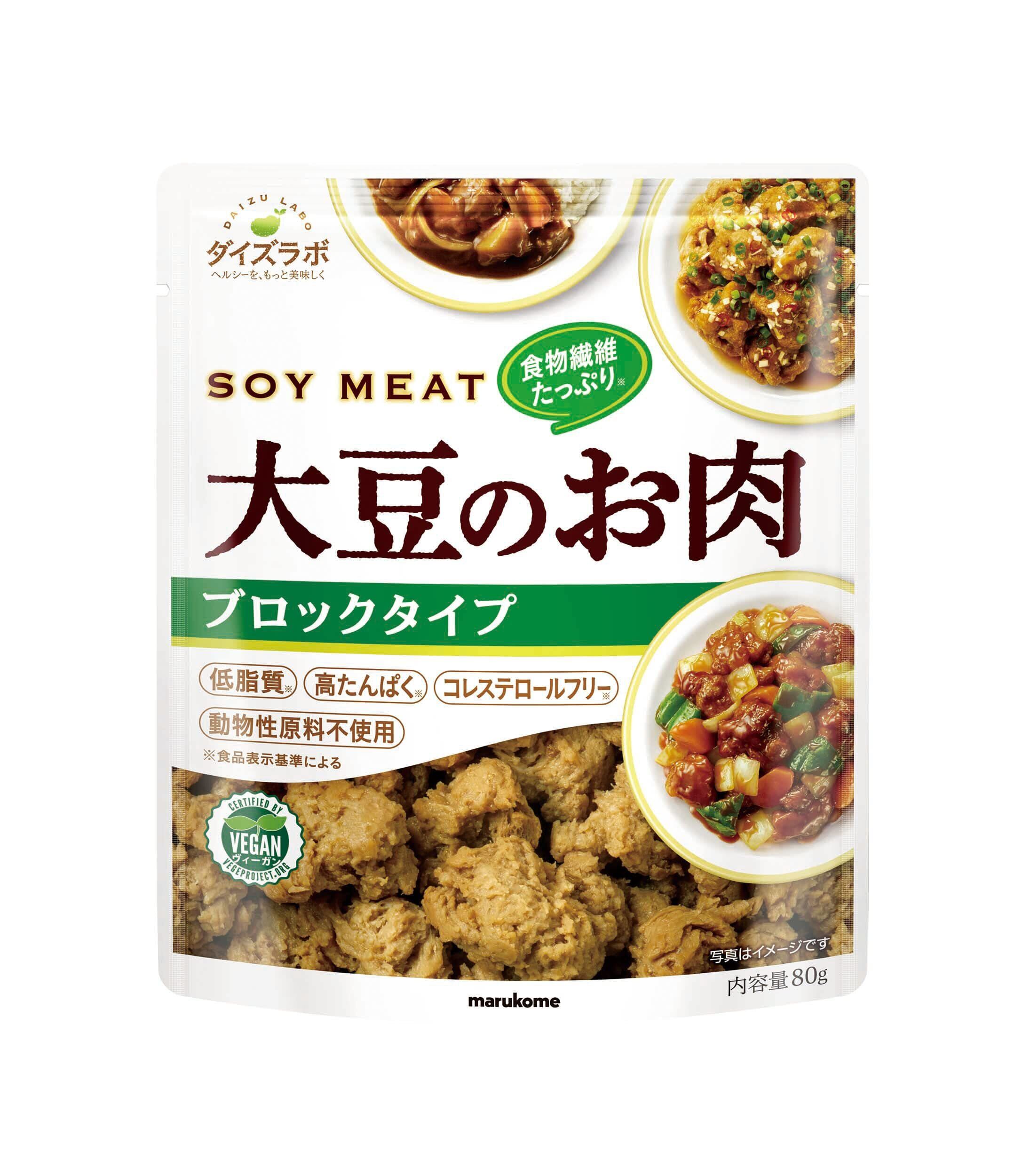「『マルコメ ダイズラボ 大豆のお肉レトルト ブロック』は、選び抜かれた大豆を使用した革新的な植物性肉です。80gのブロックタイプで、お肉のような食感と風味が楽しめる一品。ヘルシー志向の方々にもピッタリの食材です。」