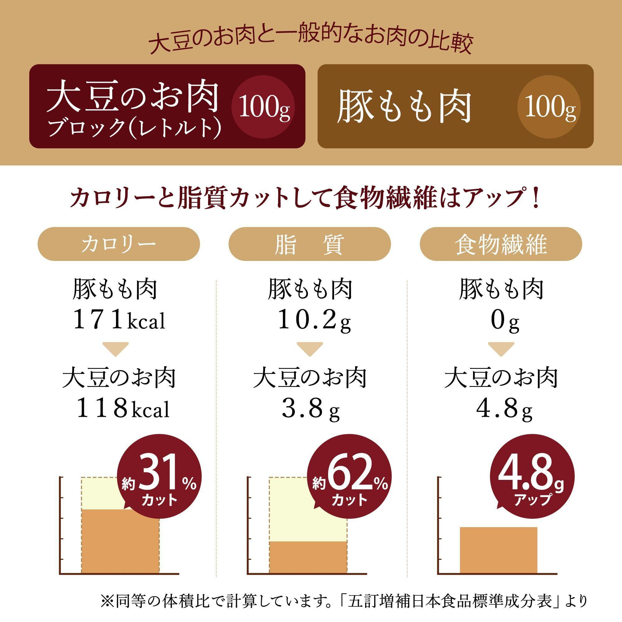 【動物性原料不使用】大豆の栄養を手軽に食べられ、高たんぱくでお肉と比べるとカロリー・コレステロールが低く、低脂質。動物性原料不使用で、野菜炒めや回鍋肉など様々な料理に使えます。