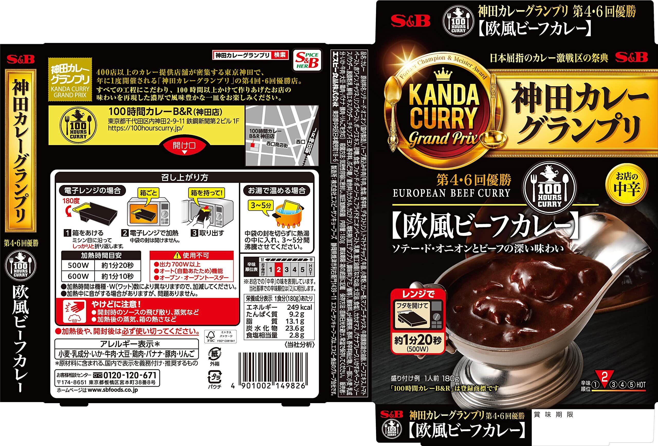 S&B エスビー食品 神田カレーグランプリ 100時間カレーB&R 欧風ビーフカレー お店の中辛 180g×5個