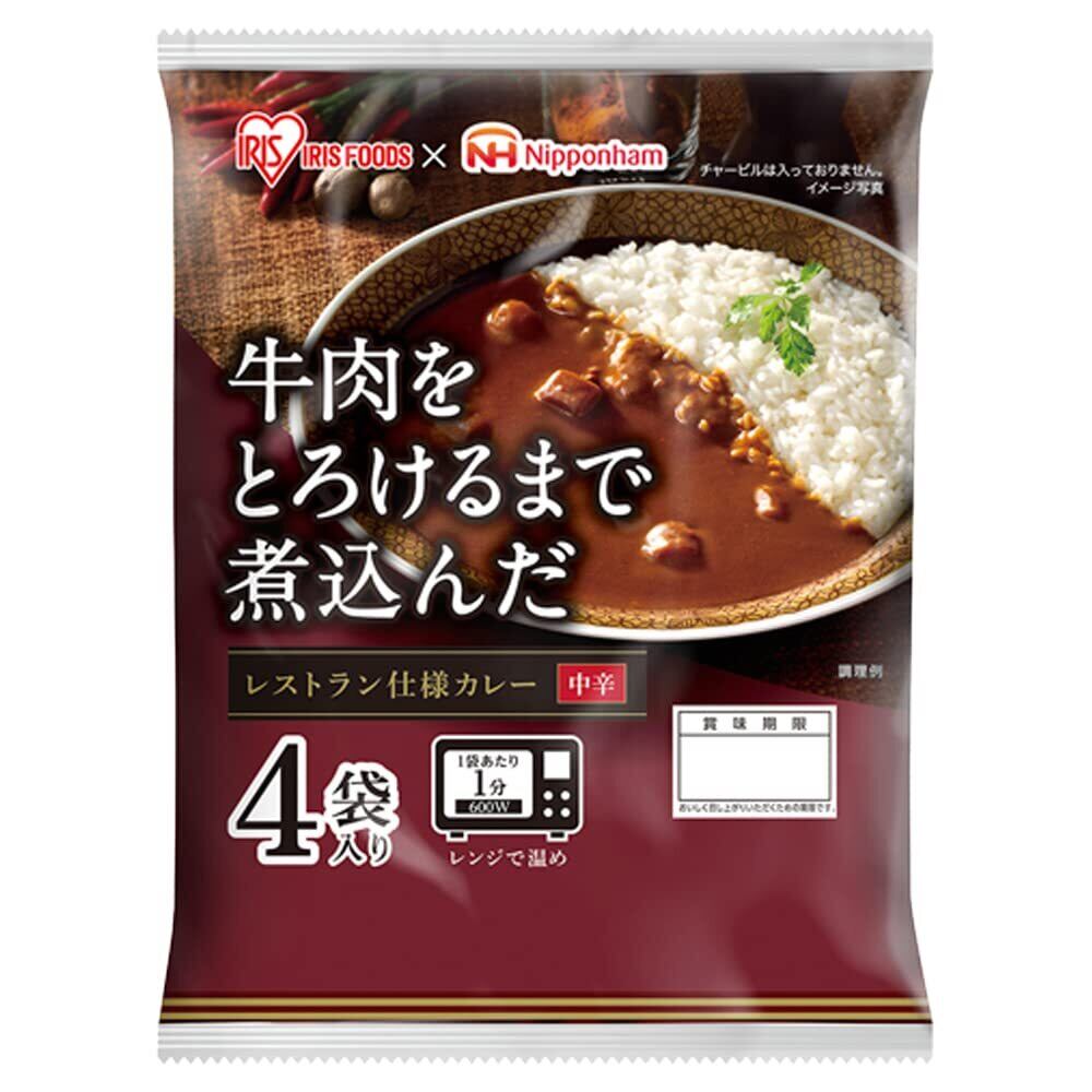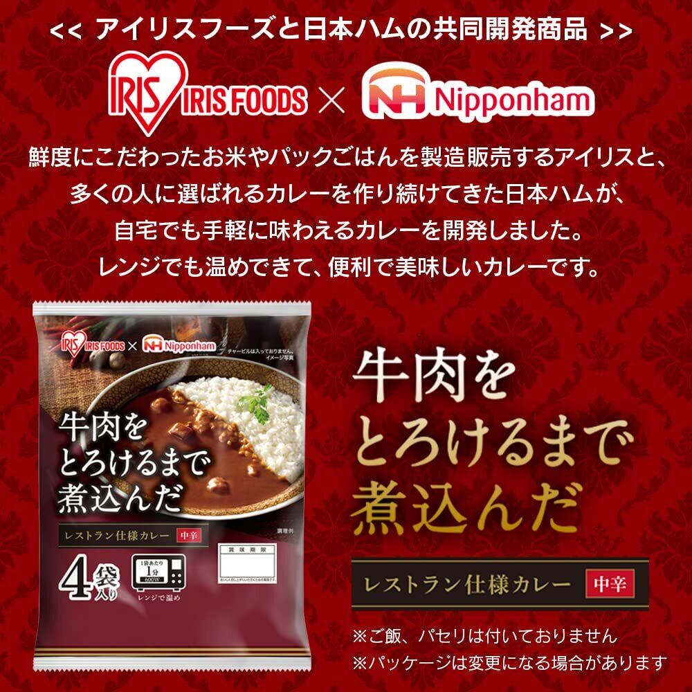 アイリスオーヤマ(IRIS OHYAMA) ×日本ハム レトルトカレー 中辛 牛肉 レストラン仕様カレー 170g x4食