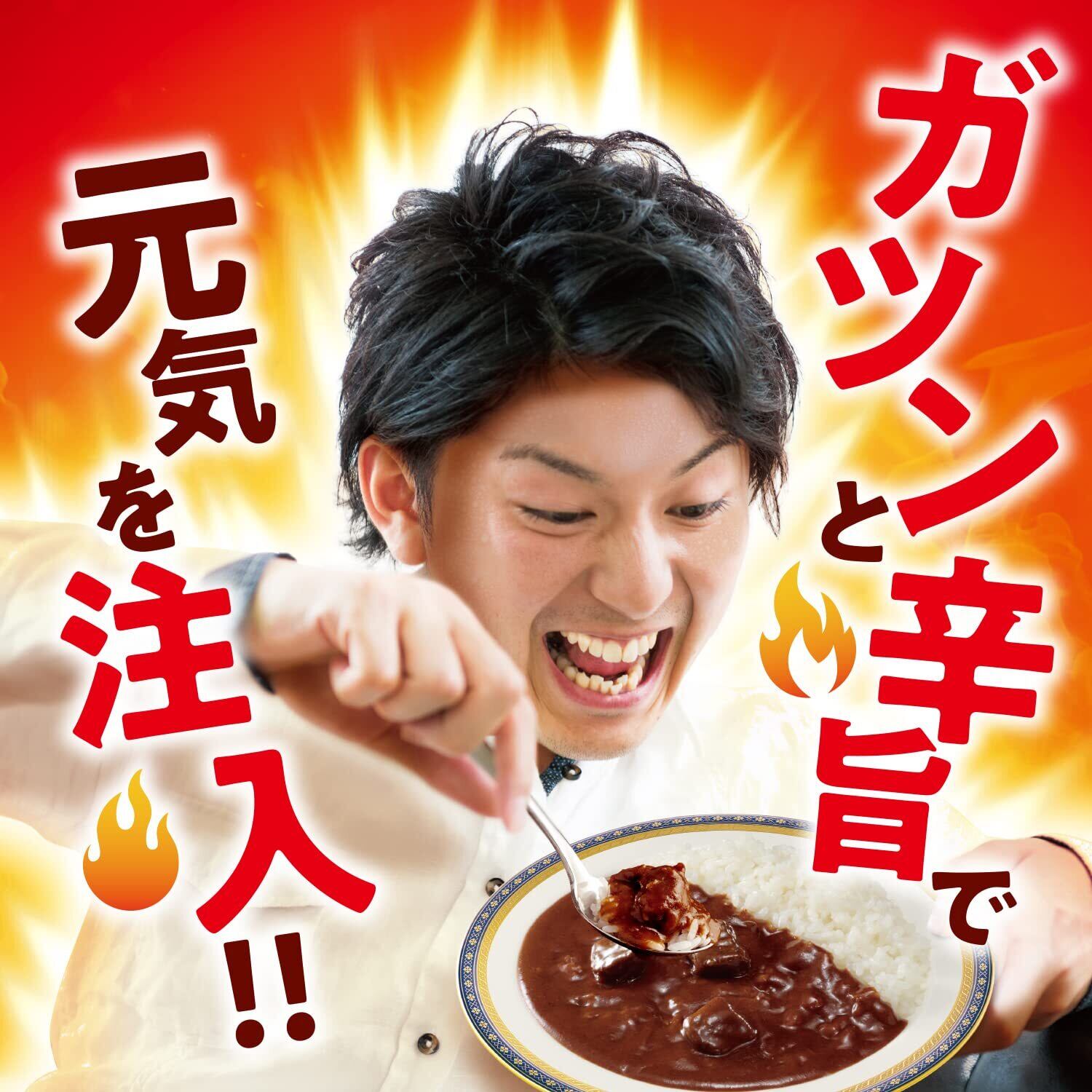 原材料:牛肉(オーストラリア)、たまねぎペースト、ラード、小麦粉、炒めたまねぎペースト、チキンブイヨン、カレー粉、砂糖、トマトペースト、米でん粉、香辛料、ウスターソース、ポークエキス、水あめ、バター、たん白加水分解物、酵母エキス、ココアパウダー、フライドガーリックパウダー、香味油、しょうがパウダー、食塩/調味料(アミノ酸等)、香料、(一部に乳成分・小麦・牛肉・大豆・鶏肉・豚肉・りんごを含む)