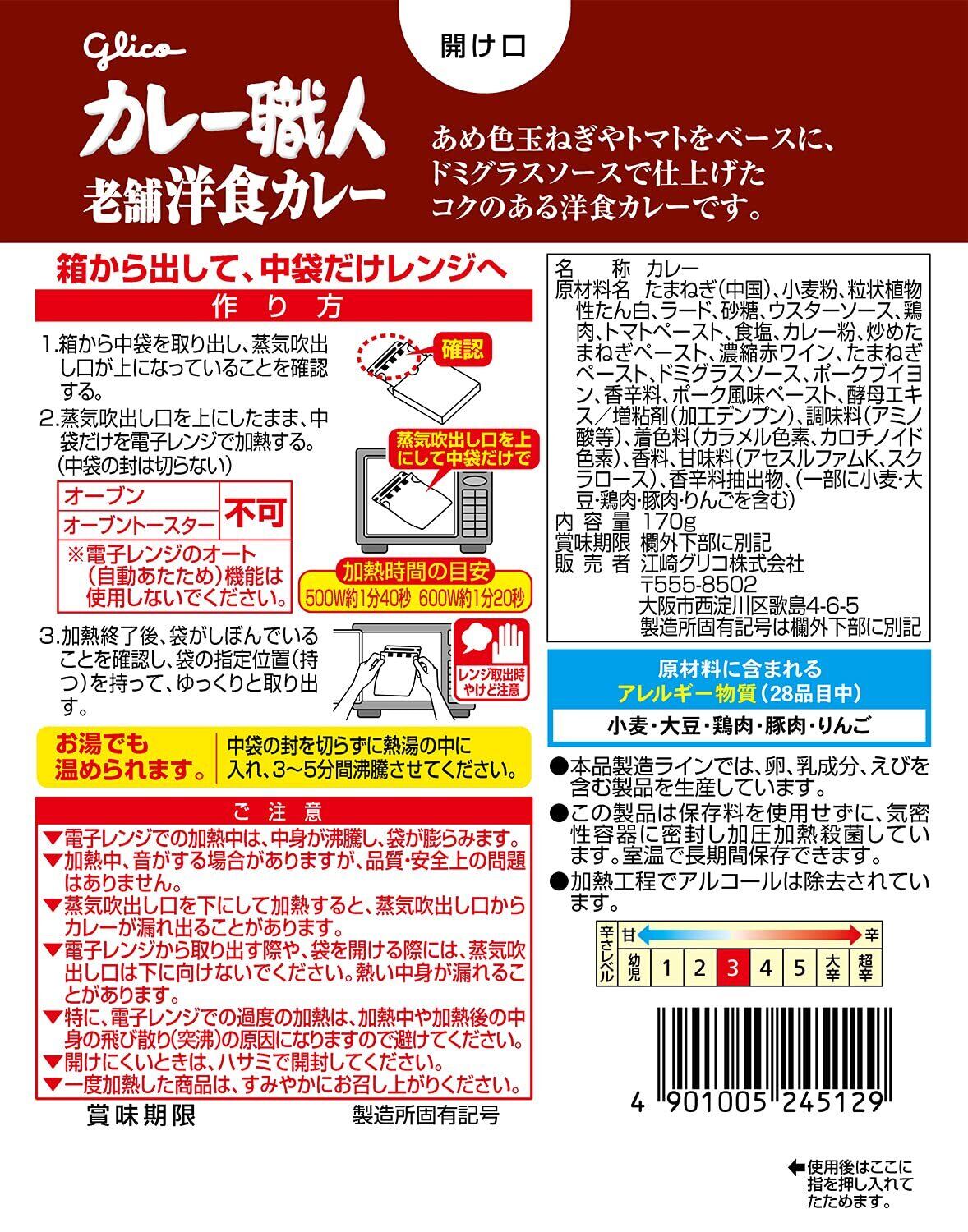 カレー職人 老舗洋食カレー 中辛 170g×10個 江崎グリコ (レンジ対応/レンジで温め簡単/常温保存/レトルト)