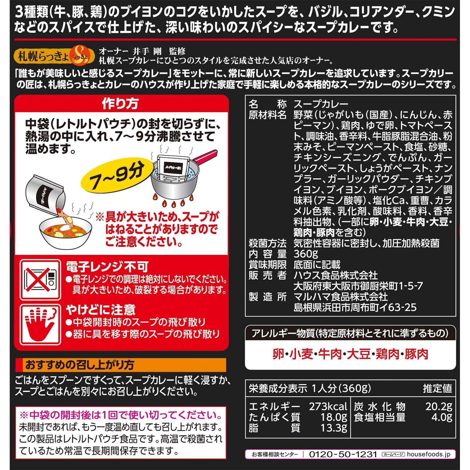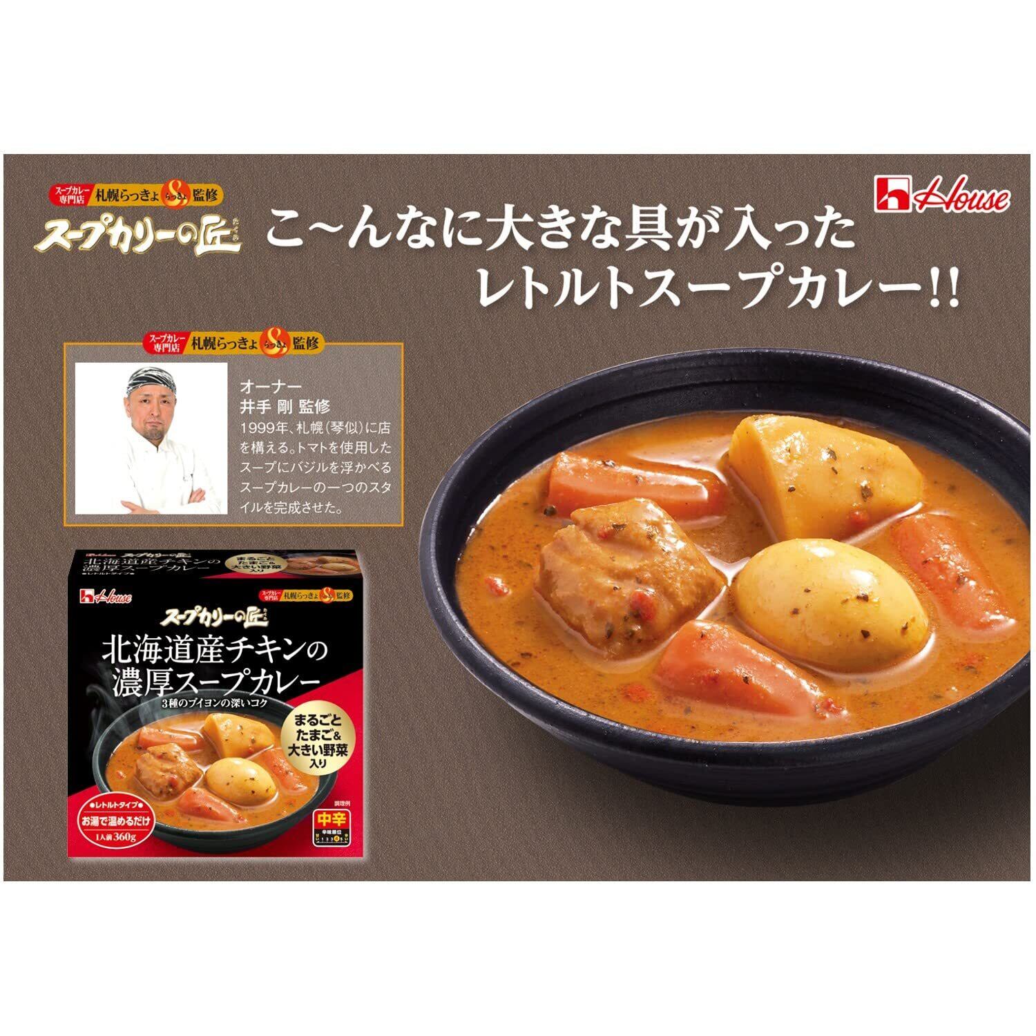 スープカリーの匠 House ハウス 北海道産チキンの濃厚スープカレー 中辛 360g×4個 【レトルト食品】【非常食】【たまご&野菜入り】